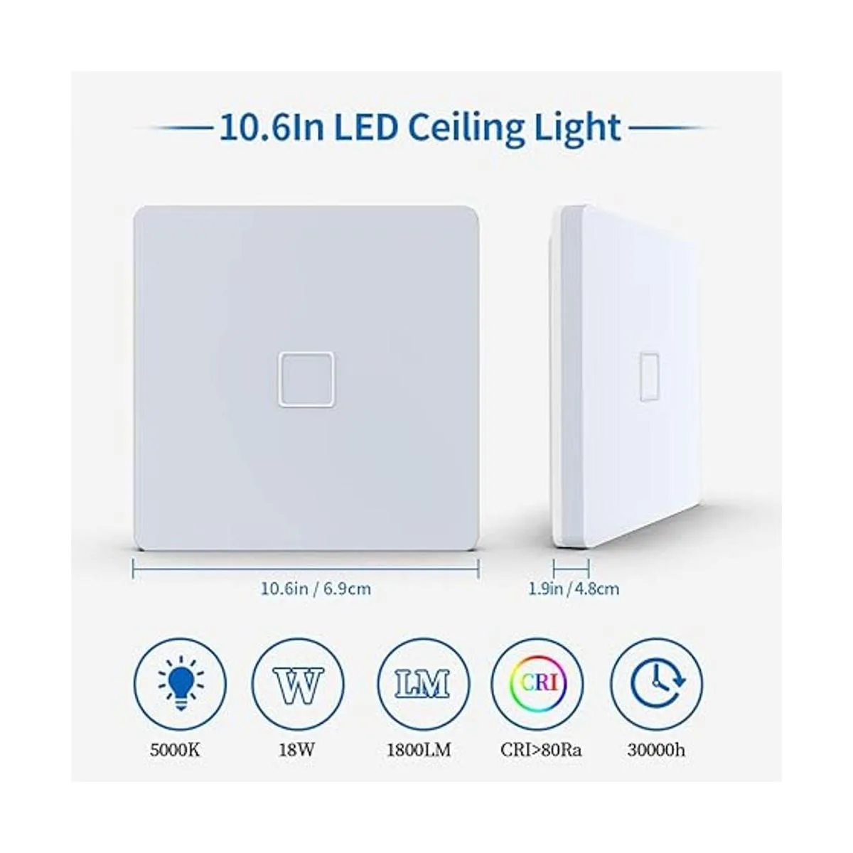 Airand Lámpara de techo LED de 5000 K, lámpara de techo empotrada de 18 W, lámpara LED cuadrada de 10.6 pulgadas para hogar y oficina, pasillo con 180 chips LED, 1800 lúmenes, 80Ra blanco frío