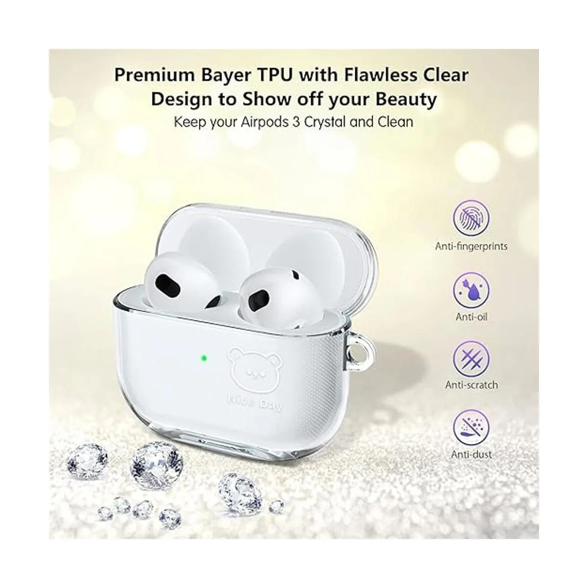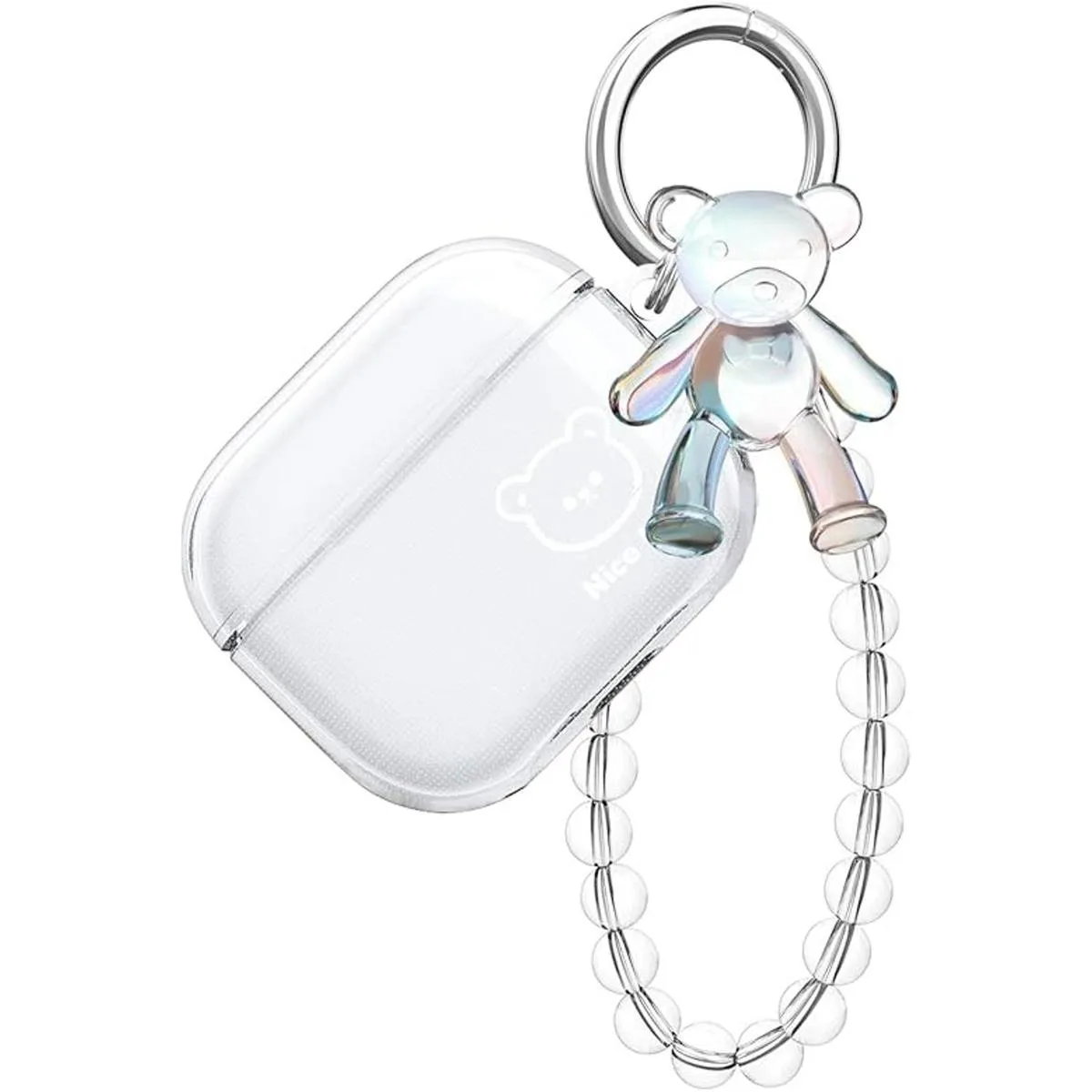 Aircawin Funda para AirPods de 3 generación, bonita funda transparente de oso para AirPods 3, funda de carga de TPU suave a prueba de golpes con mosquetón y cadena de mano de oso para mujeres y niñas, transparente