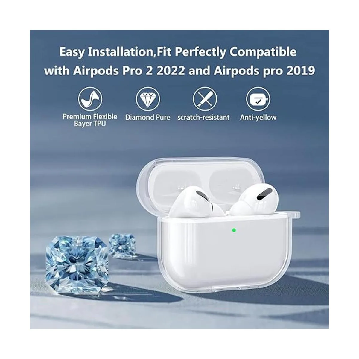 Versión actualizada: esta funda para Airpods Pro 2 se adapta perfectamente a AirPods Pro 2022, el diseño de dos partes sin bisagras te hace fácil acceso a la instalación y al botón de emparejamiento de la funda protectora de TPU transparente para tus Airpods Pros 2, el indicador LED frontal puede ser visible mientras se carga con cable y inalámbrica, nuestros Airpods Pro 2 también son compatibles con Airpods Pro. Nota: los AirPods y la funda de carga no están incluidos.