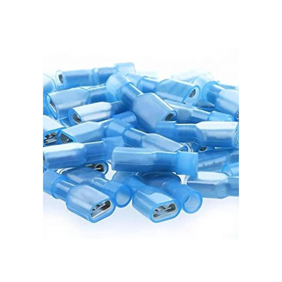 AIRIC Conector de pala hembra calibre 1614, 100 piezas de nailon totalmente aislado, cable hembra de desconexión rápida, conectores de terminal de pala azul