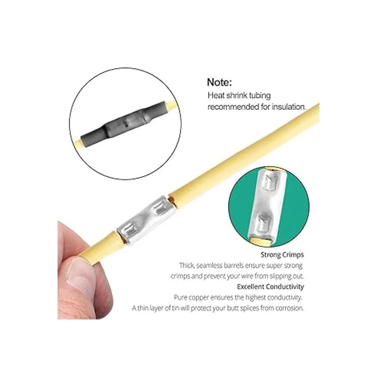 AIRIC Conectores a tope sin aislamiento, 100 unidades, calibre 1210, cables eléctricos sin aislamiento, sin costuras, terminales de virola de crimpado