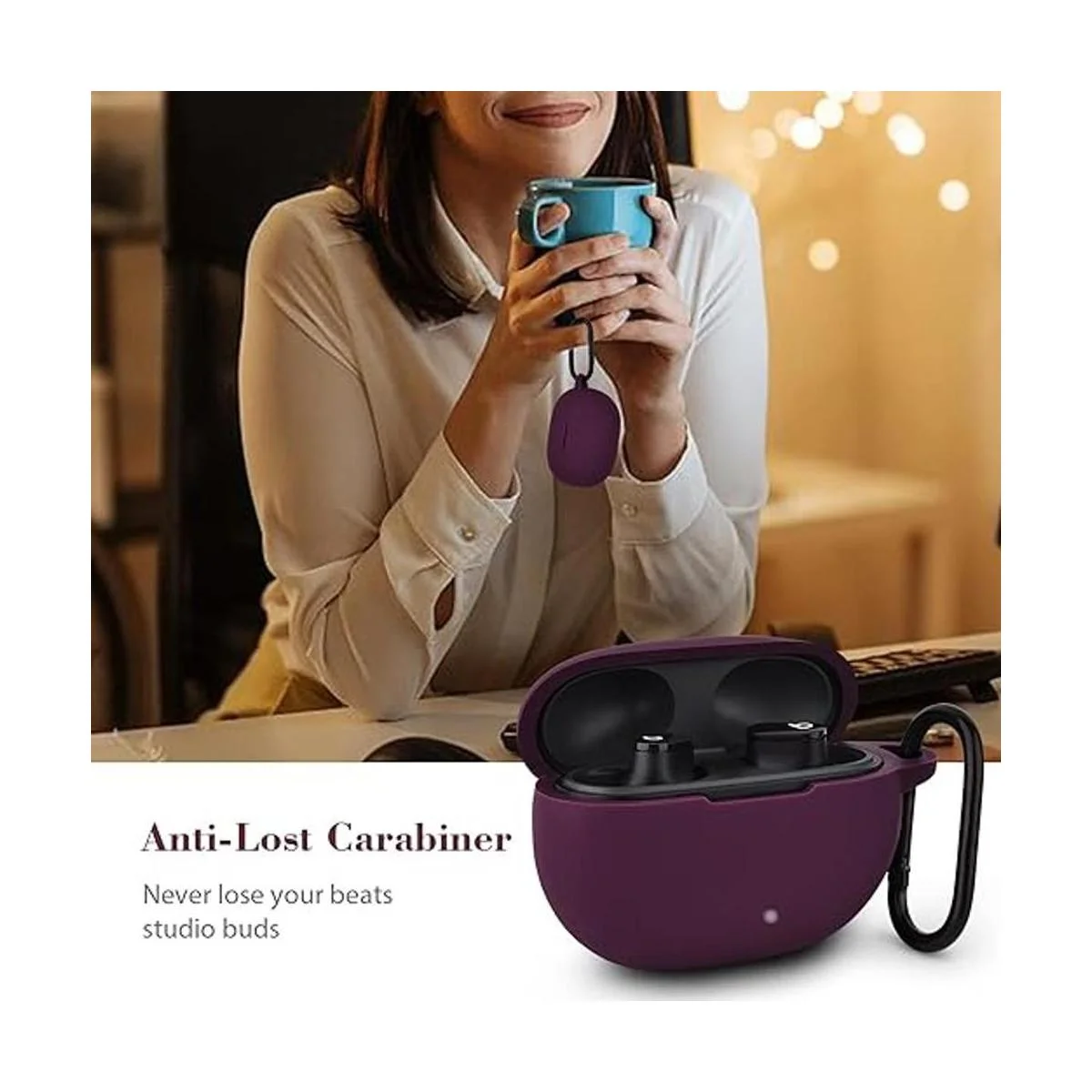 AIRSPO Funda de silicona compatible con Beats Studio Buds 2021 funda protectora suave para auriculares inalámbricos Beats con llavero morado oscuro