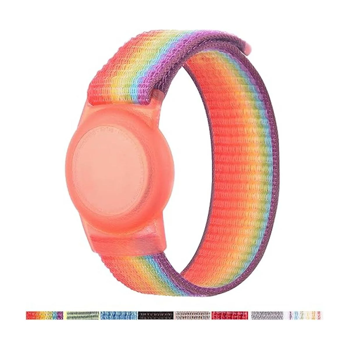 AirTag Pulsera para niños, Apple Air Tag funda protectora con pulsera de nailon, antipérdida, correa elástica de reloj para niños y ancianos arcoíris claro