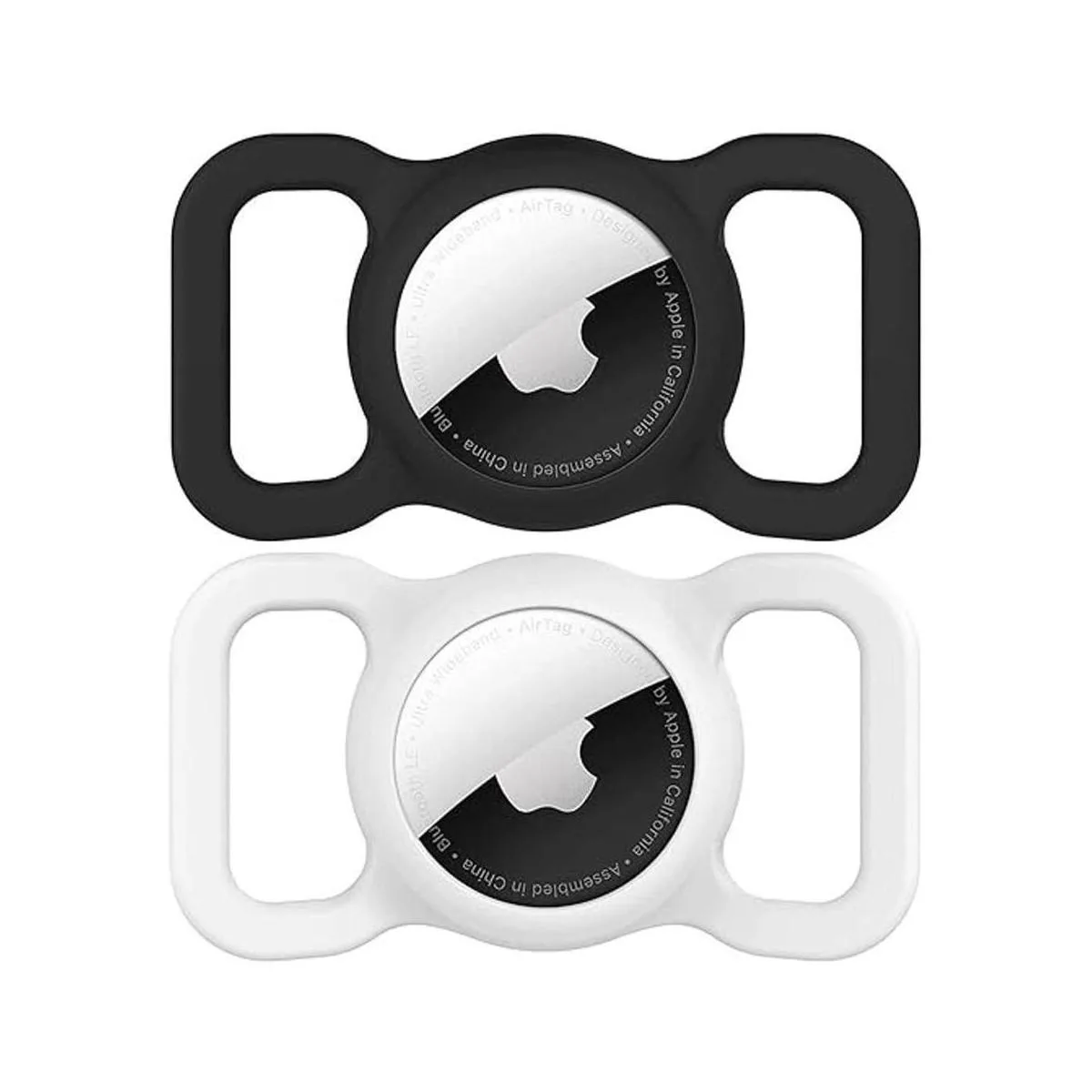 Airtag Soporte para collar de perro 2 unidades para Apple Airtags Funda antipérdida de aire compatible con collares de perro de gato negro y blanco