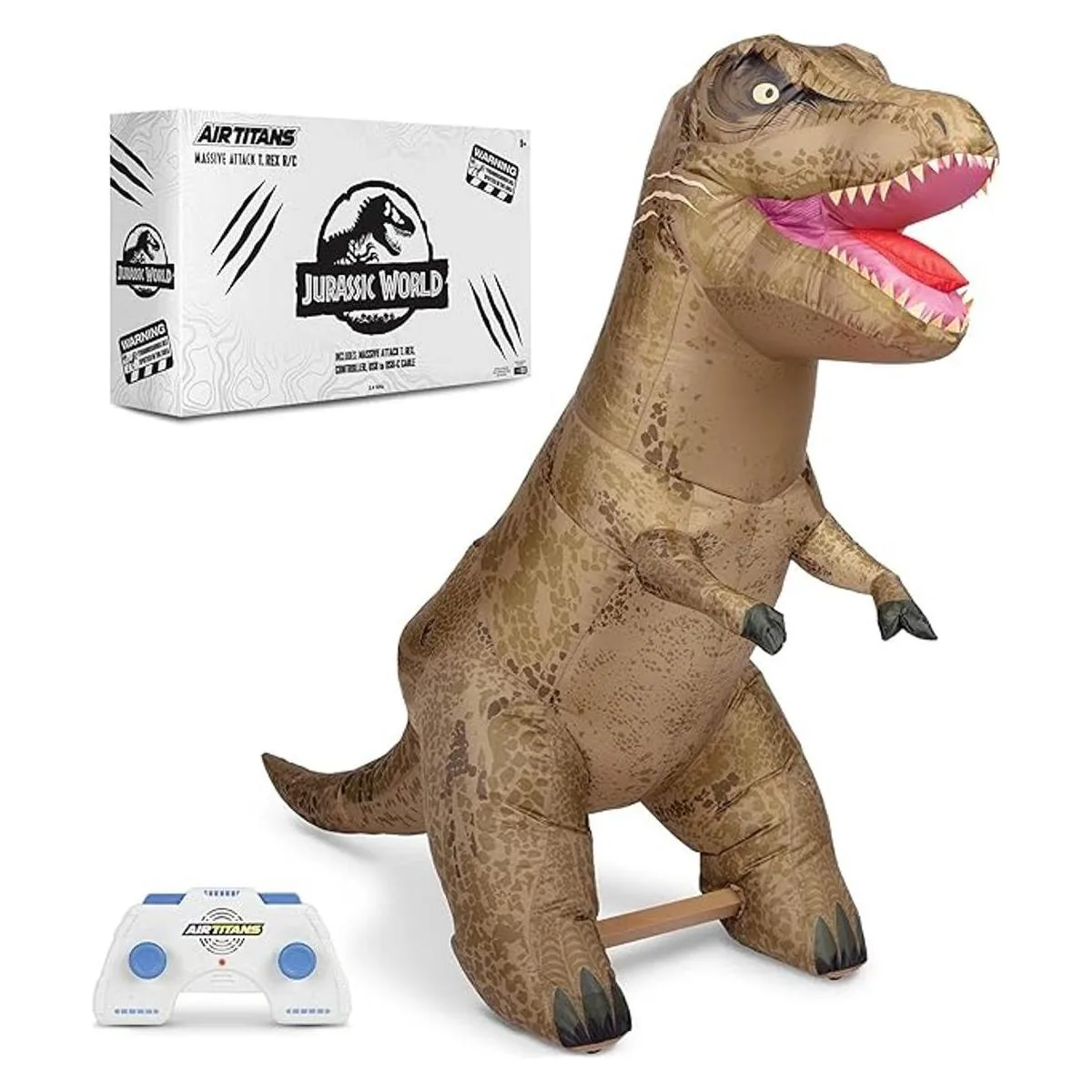 AIRTITANS Jurassic World Inflable T Rex RC Dinosaurio de ataque masivo Air Titans Más de 6 pies de largo giros y giros Stomps y rugidos