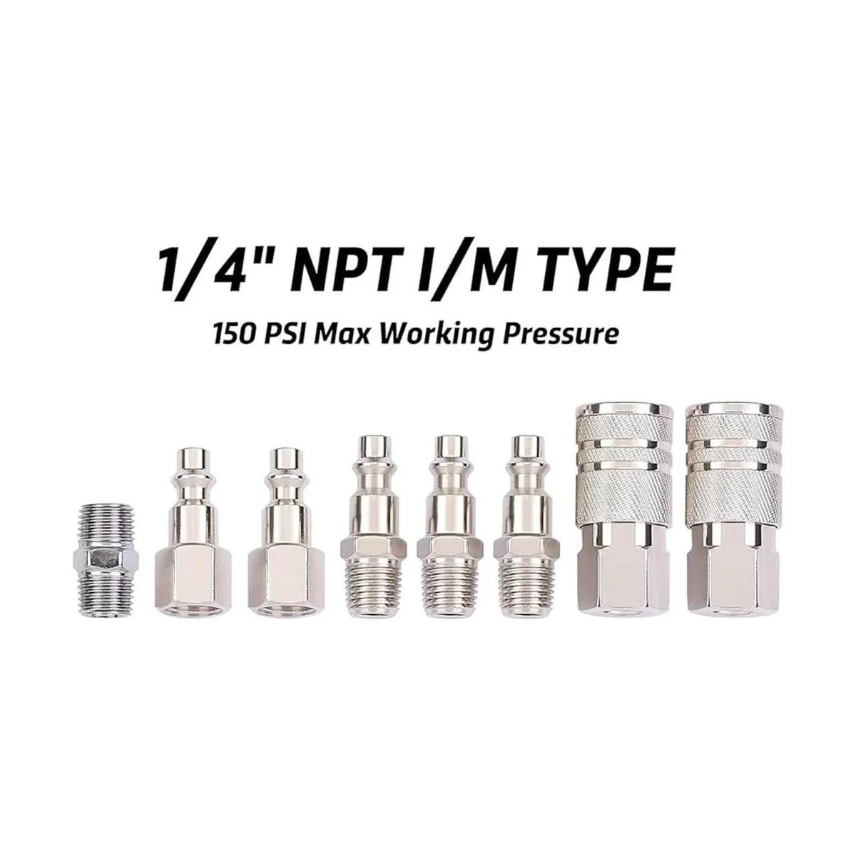Acoplador y enchufe: el juego incluye 2 acopladores rápidos NPT industriales de 1/4 pulgadas y 3 conectores FNPT de 1/4 pulgadas, 2 conectores MNPT de 1/4 pulgadas