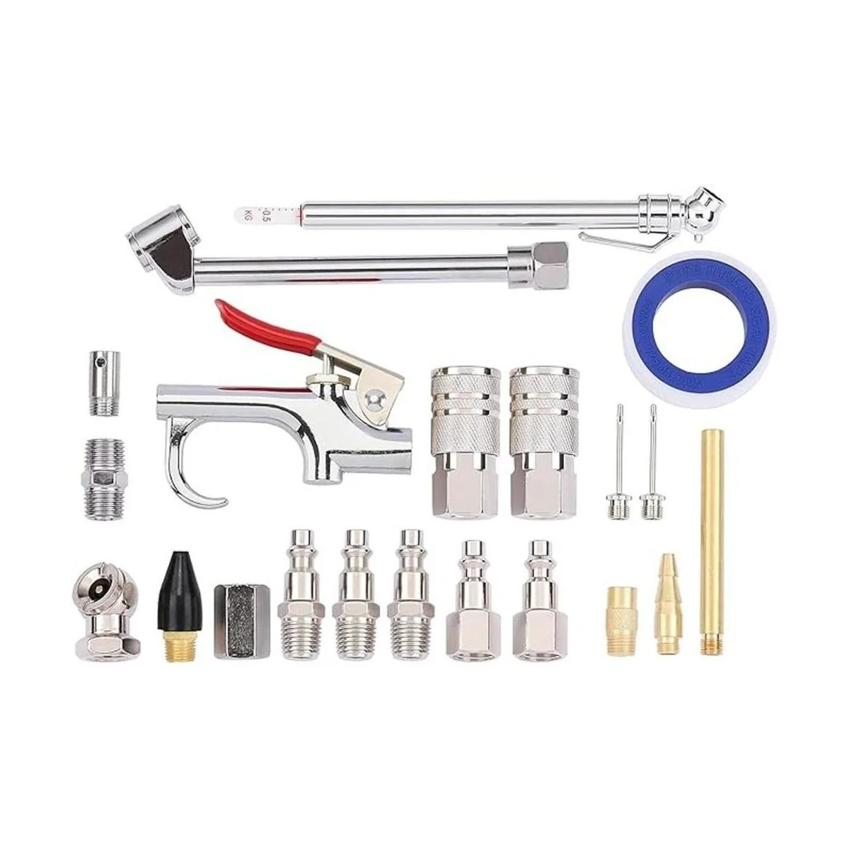 AIRTOON 21 piezas de accesorios para compresores de aire NPT de 14 pulgada, kit de inflado, con pistola de soplado, mandriles de aire, agujas de inflado, cinta de sellado incluida.