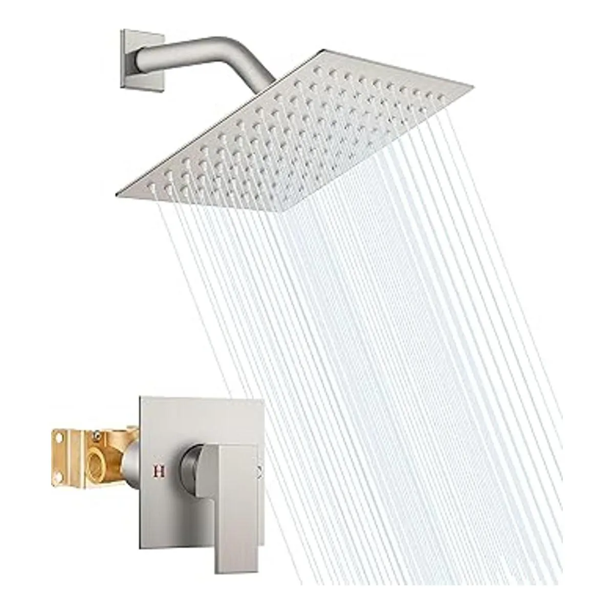 Airuida Juego de grifo de ducha de níquel cepillado, sistema de ducha de lluvia SUS304, acero inoxidable, cabezal de ducha cuadrado de 8 pulgadas, manija única con válvula rugosa kit de moldura de ducha