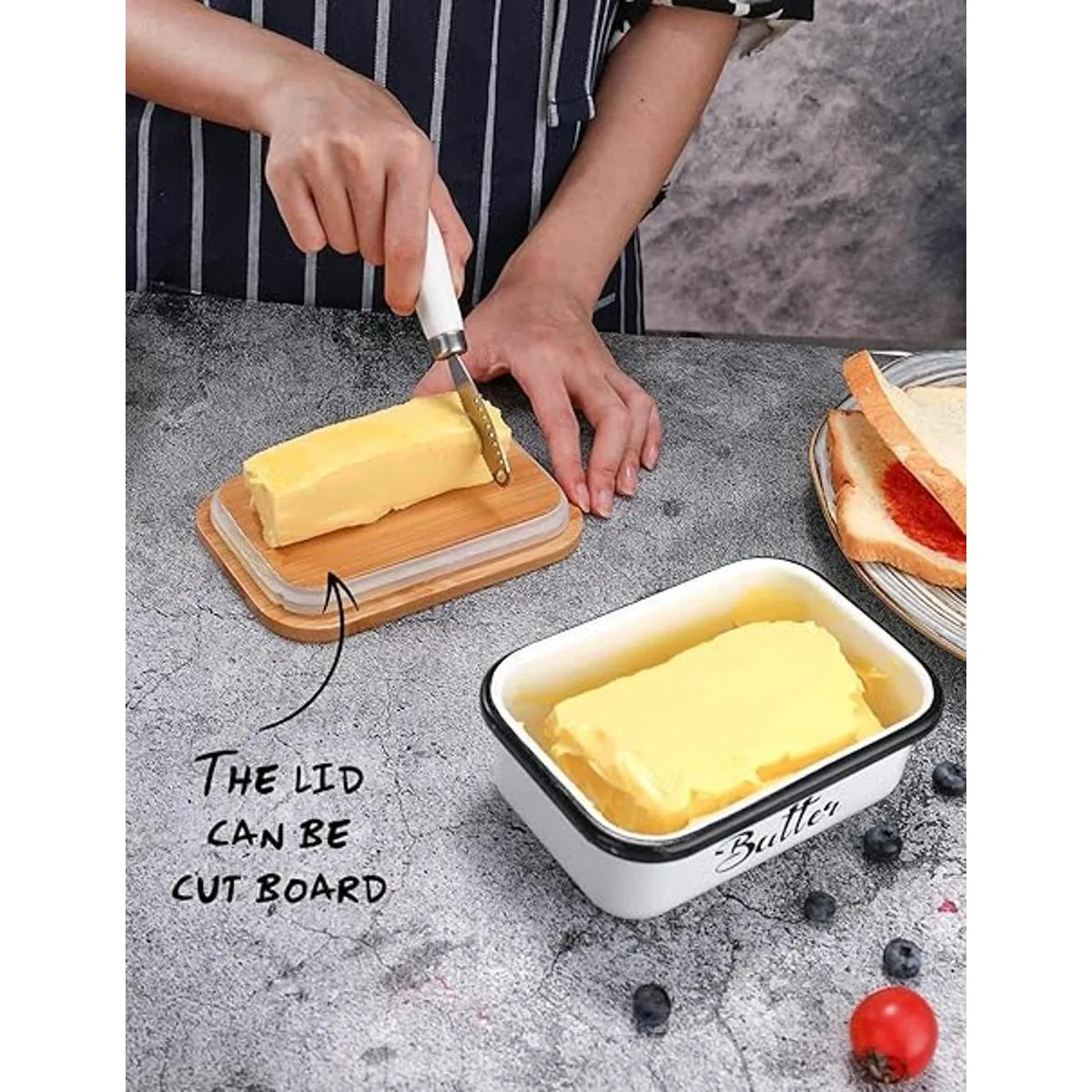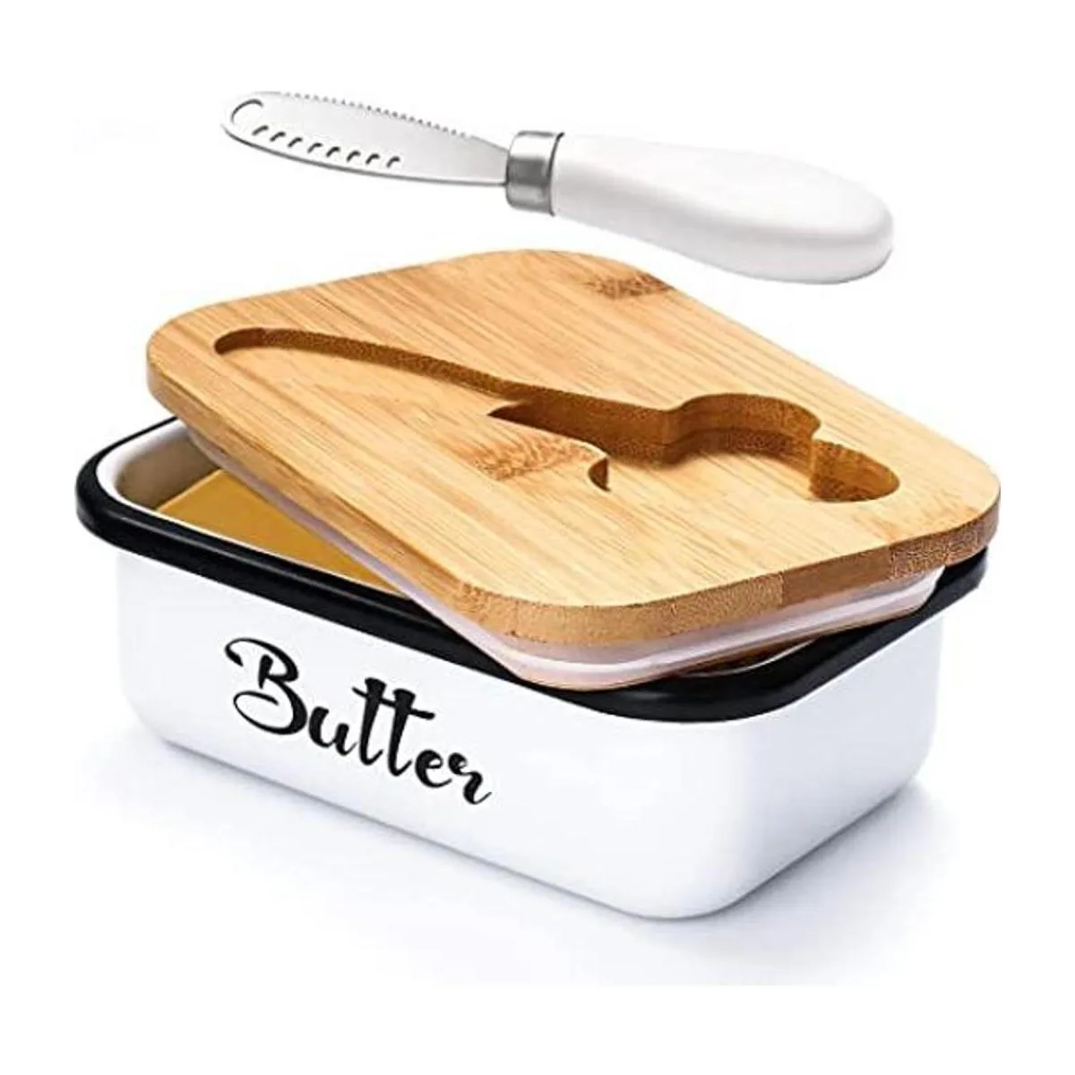 AISBUGUR Mantequera grande con tapa para encimera, mantequera de metal con cuchillo multiusos de acero inoxidable, contenedor de mantequilla con doble silicona de alta calidad, buen regalo de cocina, blanco