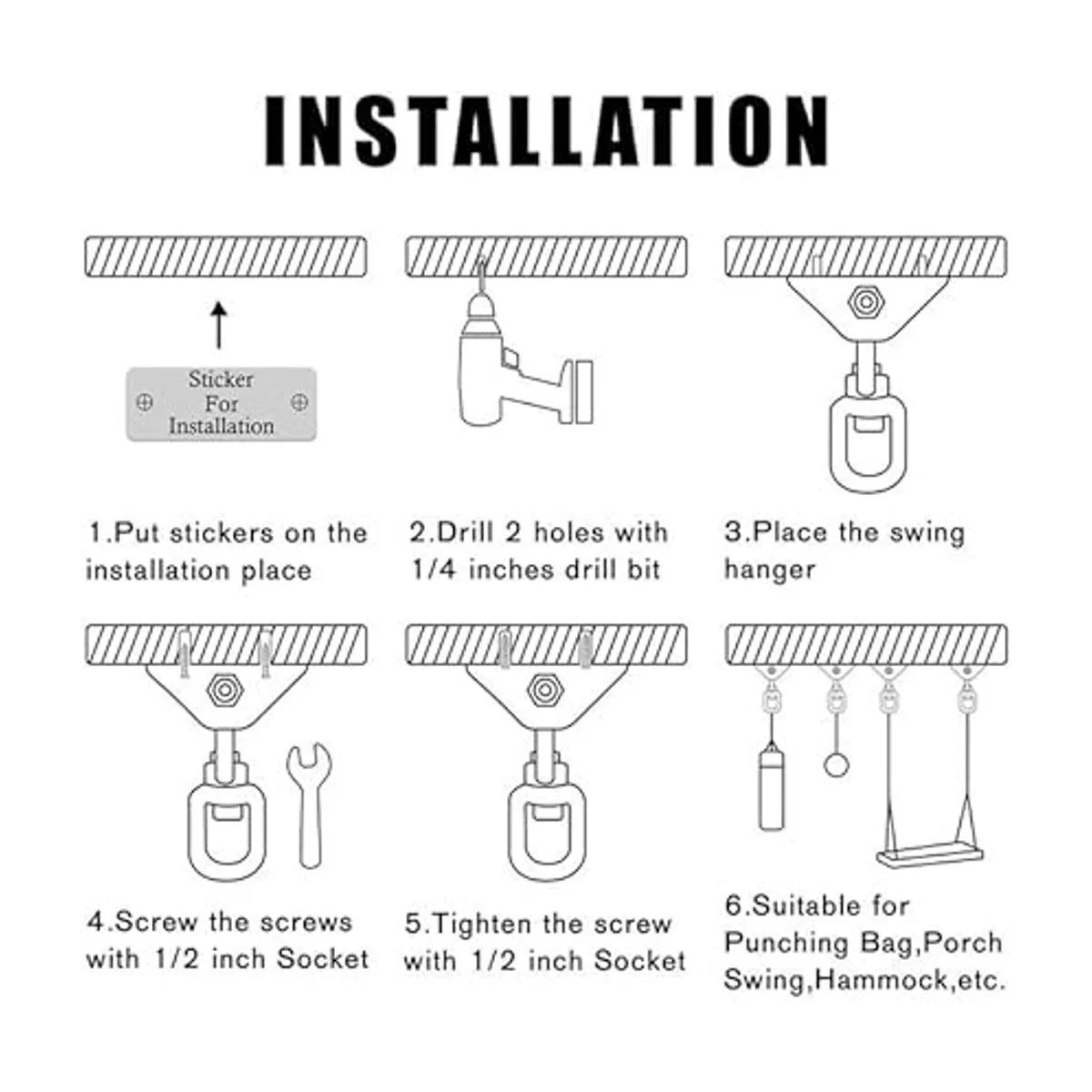 Perchas resistentes y resistentes: nuestros ganchos de columpio están hechos de acero inoxidable 304 de alta calidad, herrajes súper resistentes para al menos 1000 libras de capacidad.