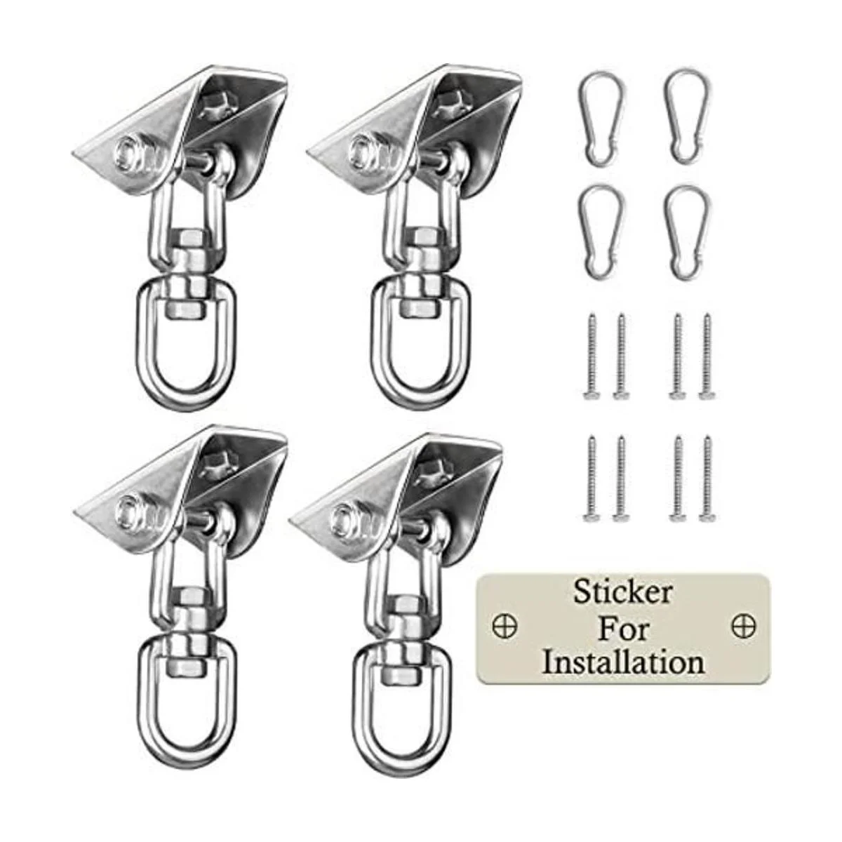 Aisto Perchas de columpio resistentes para juegos de madera de 1000 libras de capacidad, 360, accesorios giratorios de acero inoxidable, 4 paquetes para porche, parque infantil, yoga, bolsa pesada