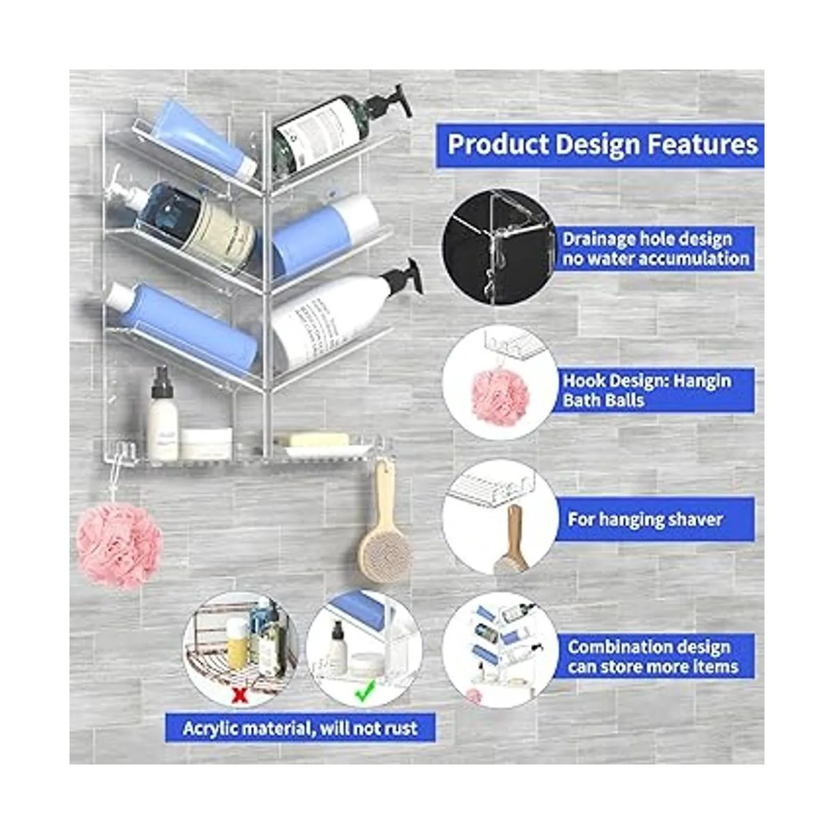 Material antioxidante: nuestro estante organizador de ducha a prueba de óxido para baño puede garantizar que no se oxide. Debido a que este producto está hecho de material de vidrio acrílico, no habrá problema de oxidación después de un uso a largo plazo en el baño o contacto prolongado con el agua. Por favor, ten la seguridad de usar.