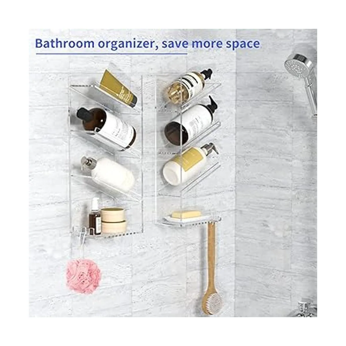 AITEE Organizador de baño acrílico para ducha, organizador de champú transparente montado en la pared, organizador de ducha con ventosa, sin perforación y resistente al óxido, resistente y duradero, estante combinado