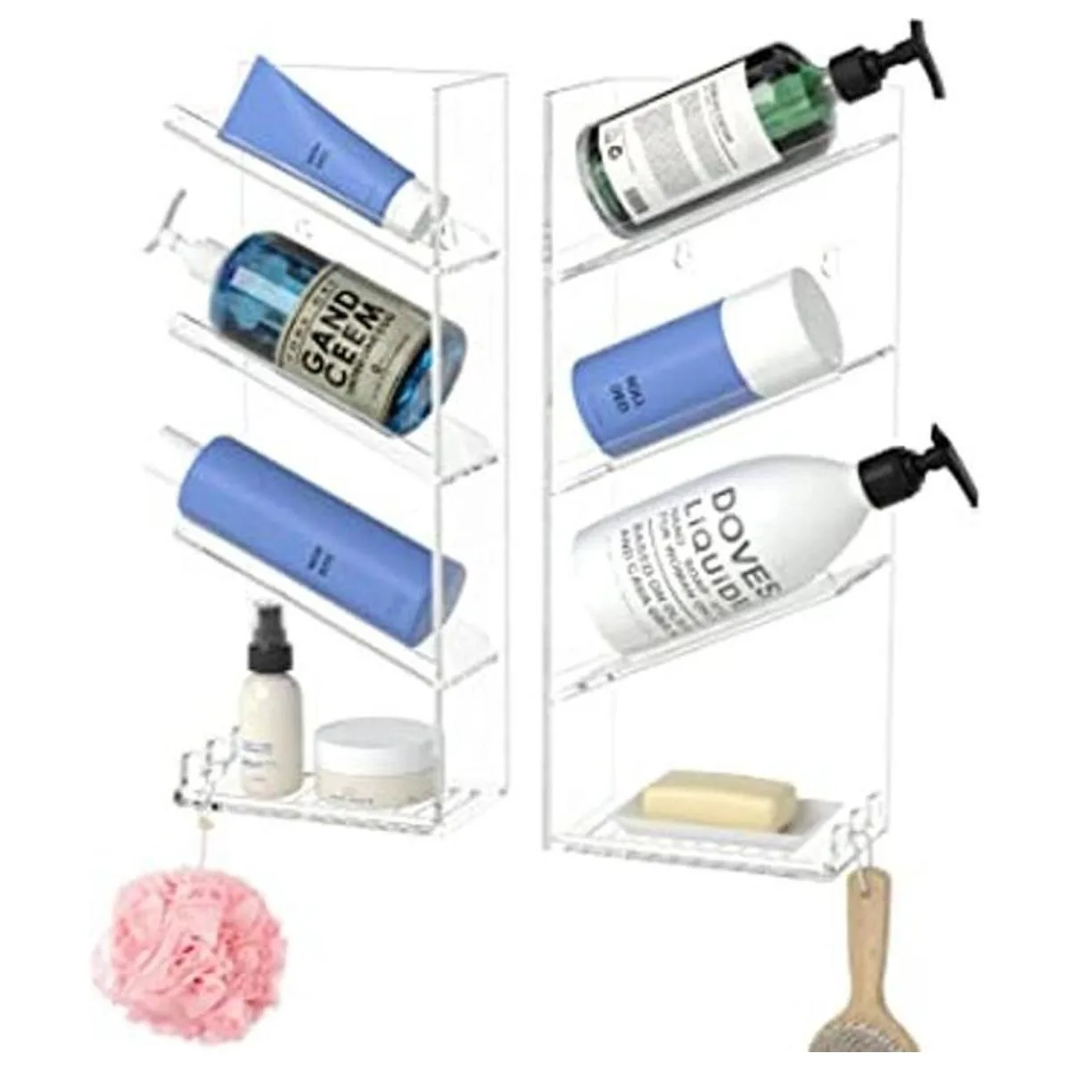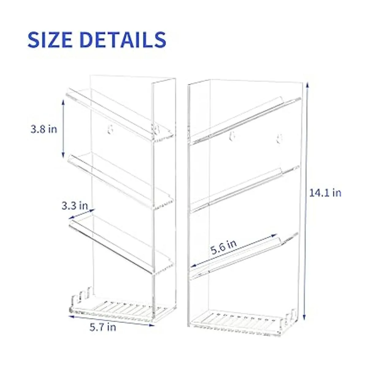 Diseño de estante inclinado: este organizador de baño tiene un diseño de estante inclinado, que te permite quitar cada gota de gel corporal y champú sin tener que apretar con fuerza, el gel corporal en la parte inferior se inclinará hasta la parte superior de la botella.