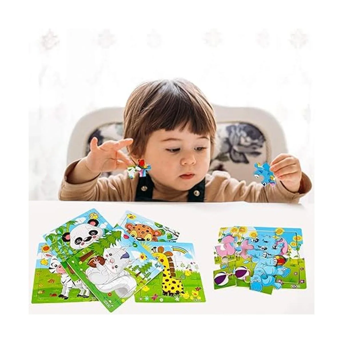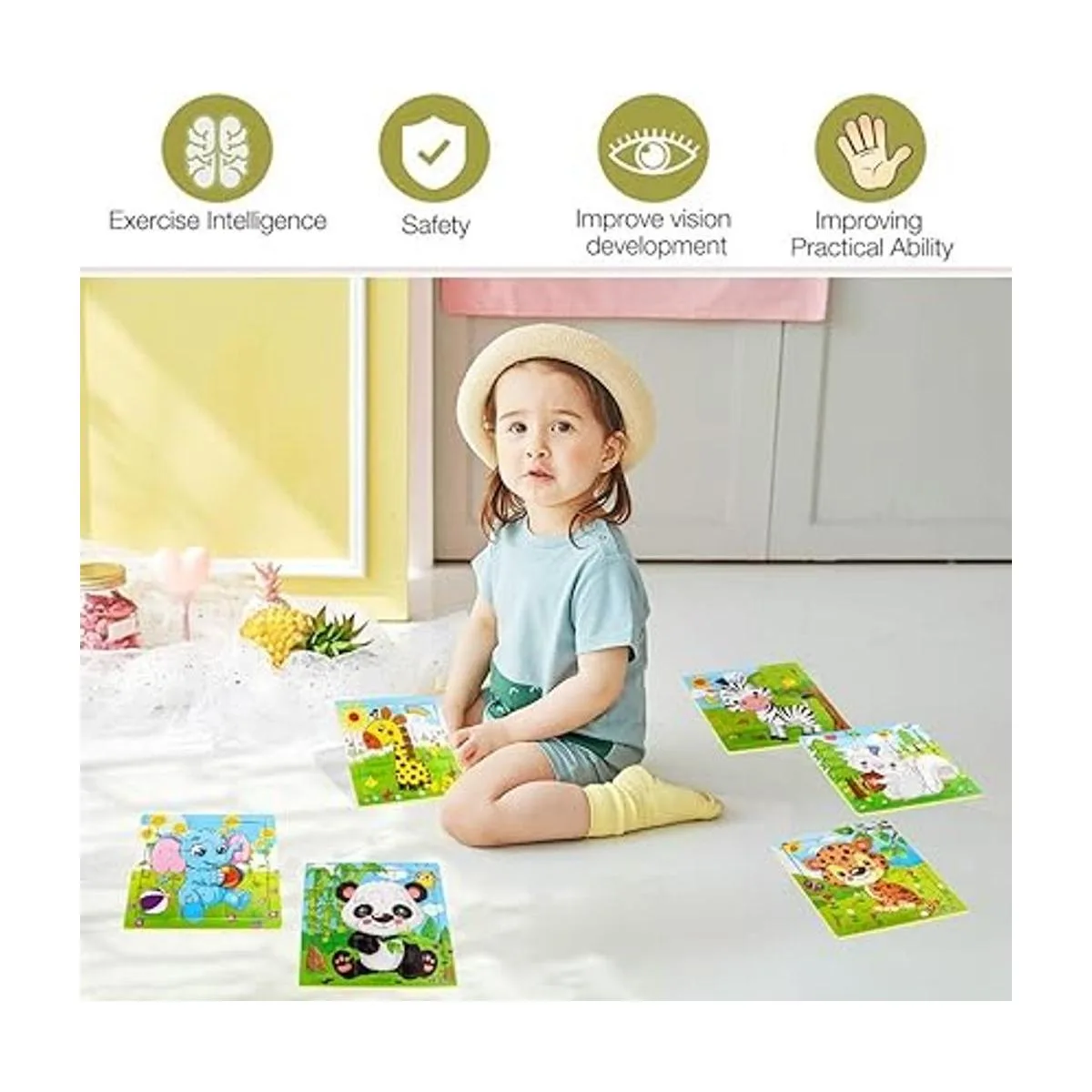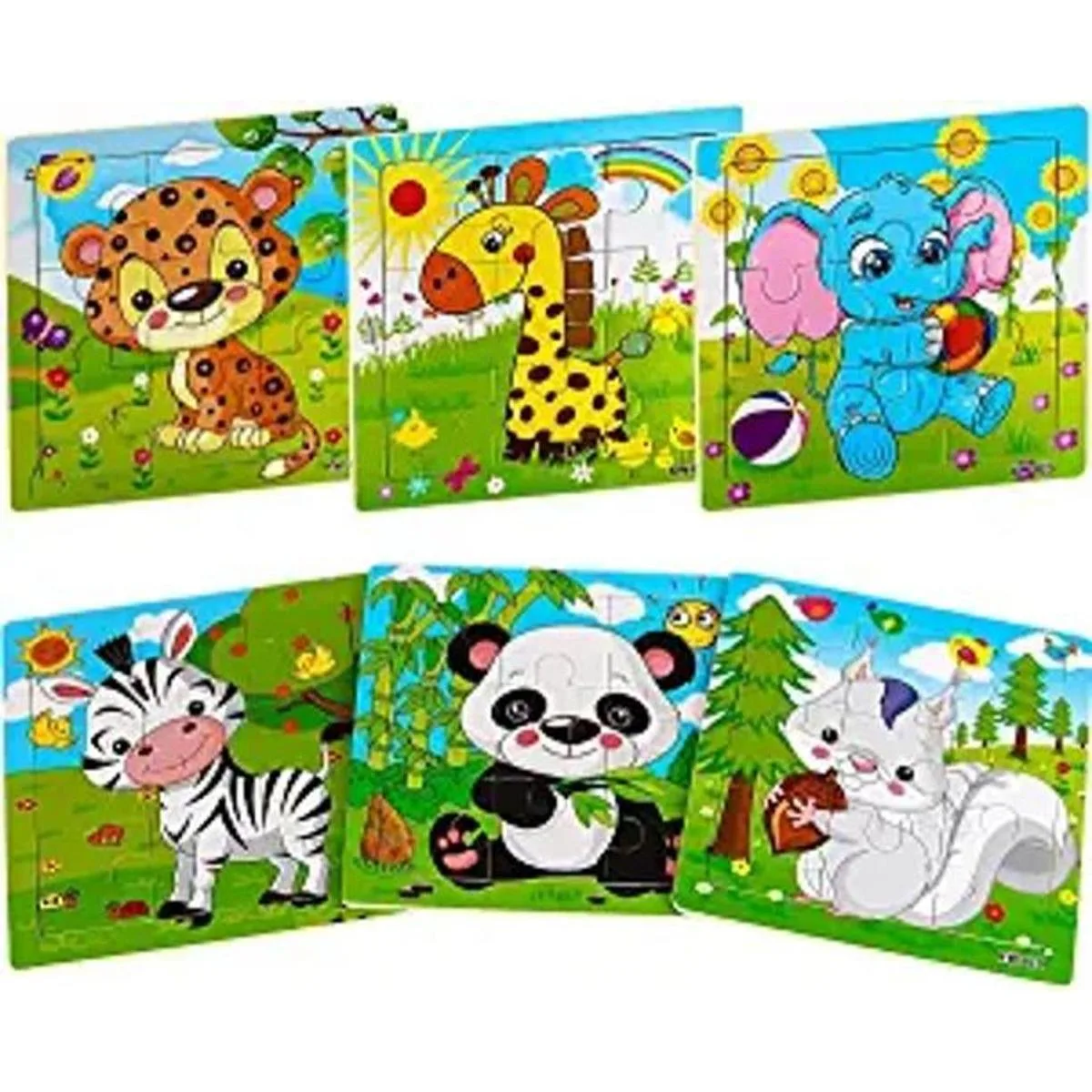 Adorable juego de rompecabezas de animales: paquete de 6 rompecabezas de madera para niños pequeños, elefantes, pandas, jirafas, ardillas, tigre y animales de cebra son el rompecabezas favorito de los niños pequeños. Color brillante y tamaño perfecto 9 piezas cada uno para niños pequeños, fácil de transportar y como un juego de viaje.