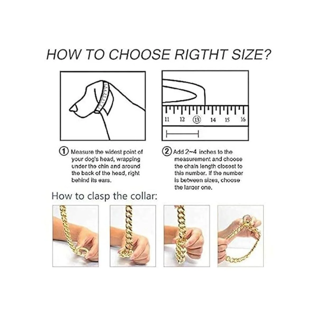 Por qué elegir el collar de perro de acero inoxidable Todavía te preocupa que el perro mastique el collar Lo cambias a menudo debido a los daños masticables de los perros Elige este collar de metal de acero inoxidable. El metal de acero inoxidable es respetuoso con el medio ambiente y libre de contaminación. La cadena es sólida, fuerte y masticable, elegante y duradera, fácil de poner y quitar.