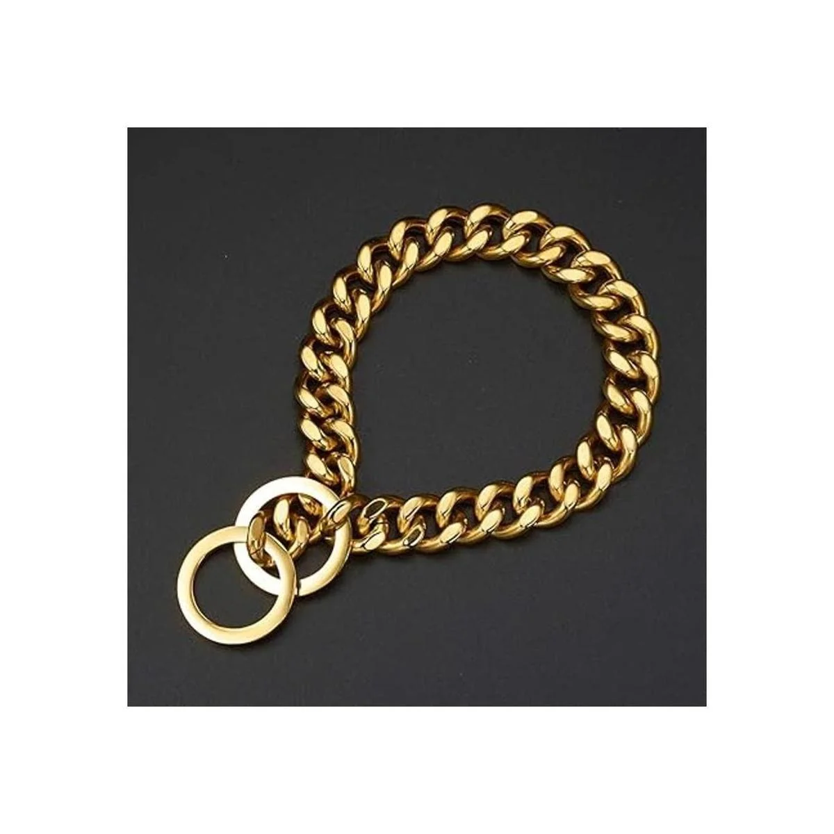 Aiyidi Collar de cadena para perro de acero inoxidable dorado y plateado de 0.472 in de ancho, cadena de eslabones cubanos para perros grandes, medianos y pequeños de 12 a 26 pulgadas oro, 14 pulgadas