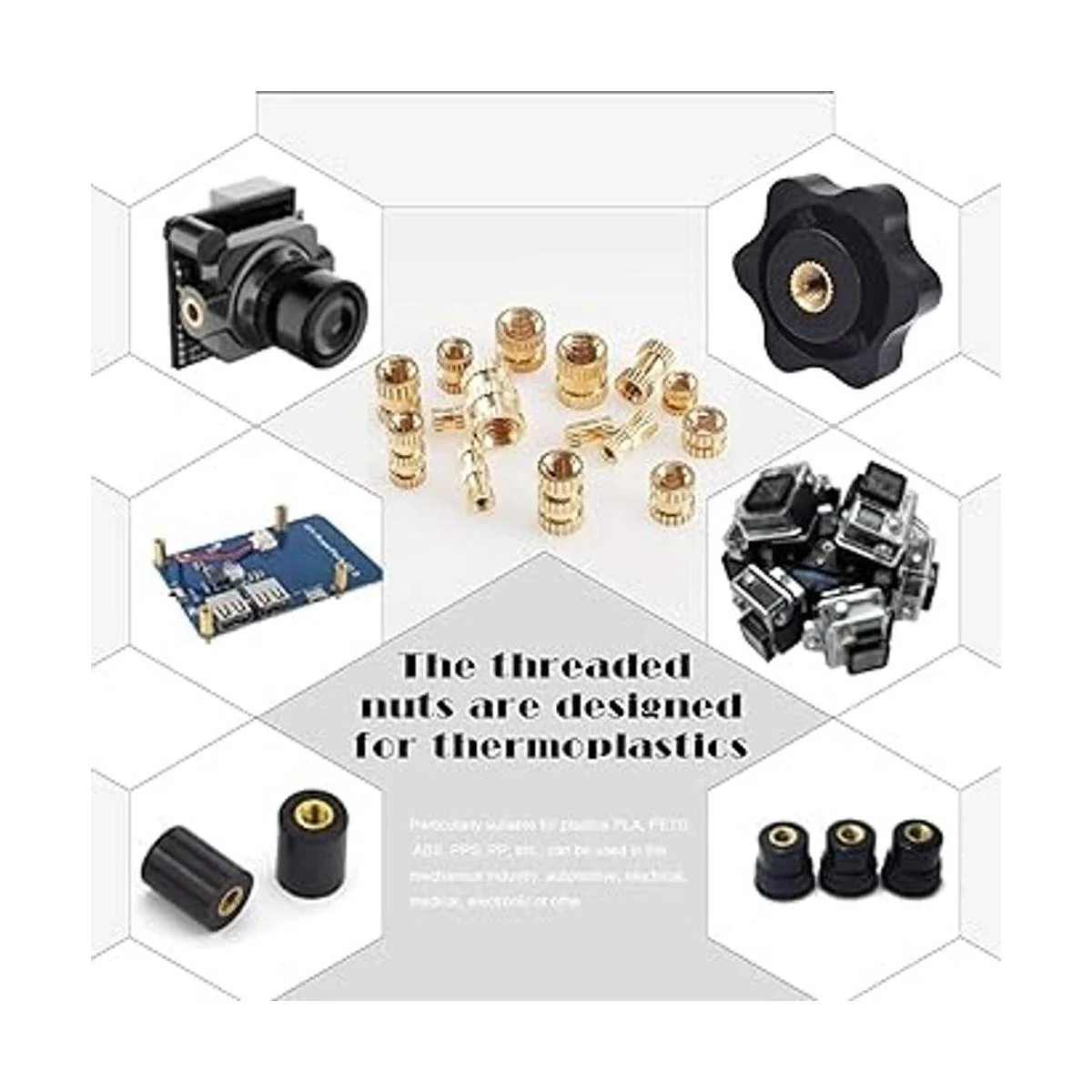 AJOYIB Tuercas de inserción roscadas de latón M2 M3 M4 M5 rosca hembra Tuerca moleteada Insertos Tuerca de inserción para piezas de impresión 3D