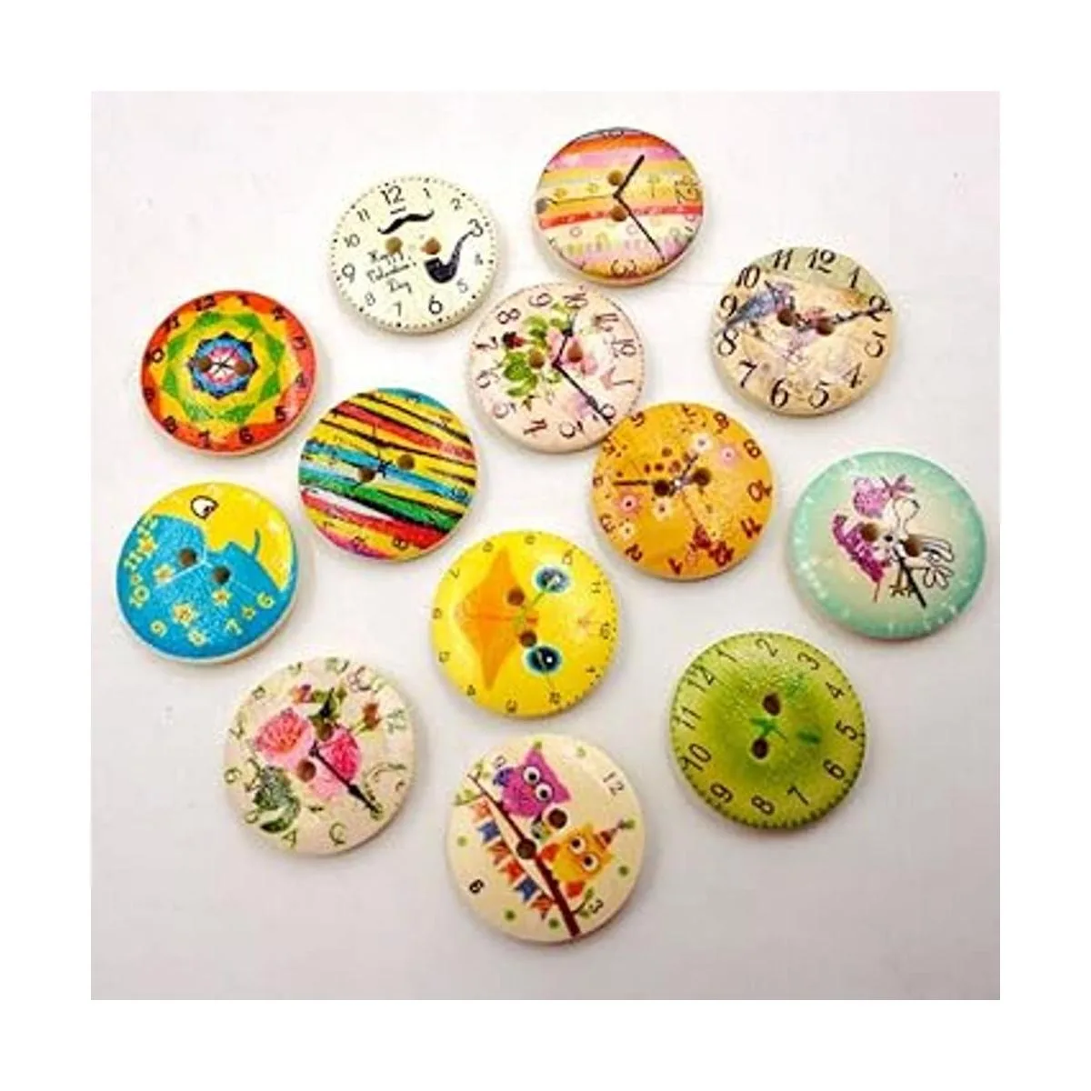 Material: Madera; Botón Diámetro: Acerca de 20 mm, Diámetro del agujero: aproximadamente 2,6 mm; Multicolores estilo, Varios patrones de reloj.