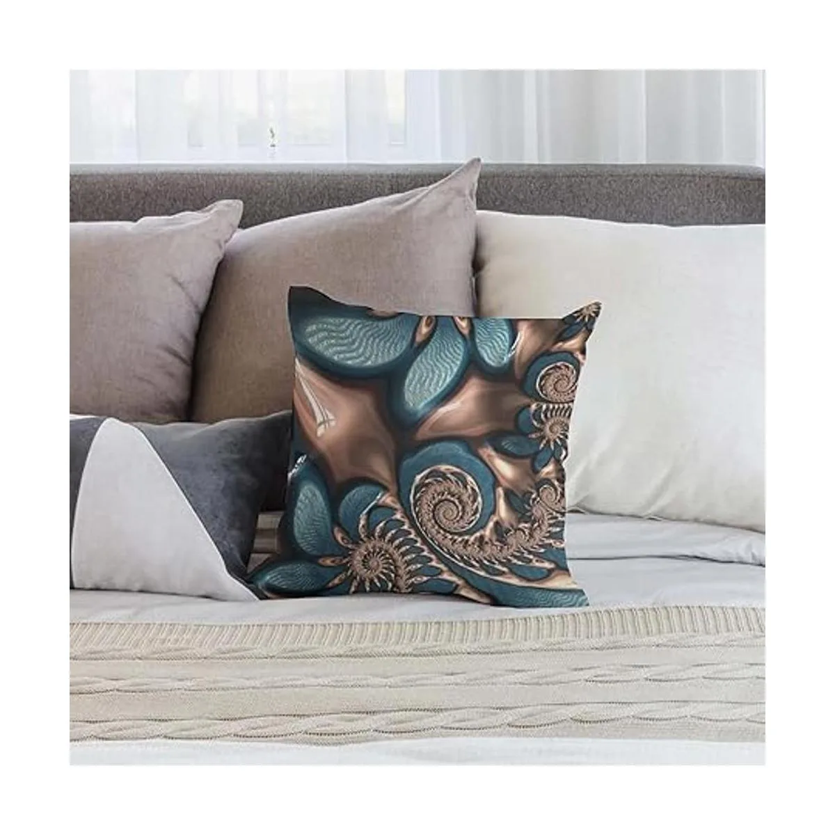 Akame Funda de almohada con espirales fractales de color verde azulado, diseño de espiral de chocolate, acogedora, cuadrada, decoración del hogar para cama, sofá, sala de estar, 18 x 18 pulgadas, tamaño único