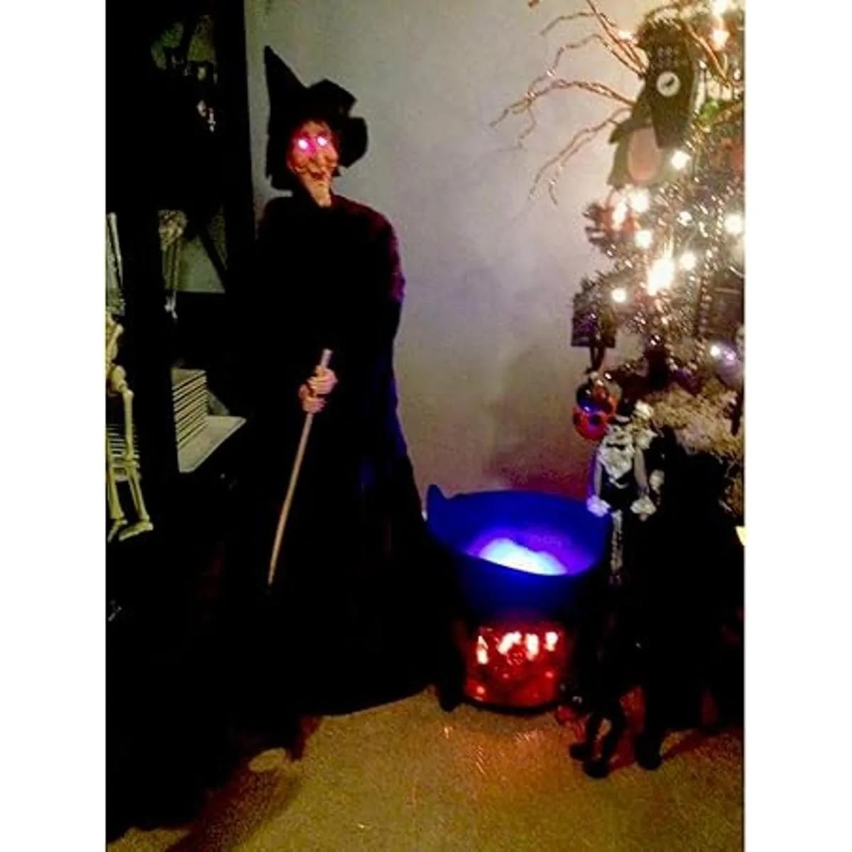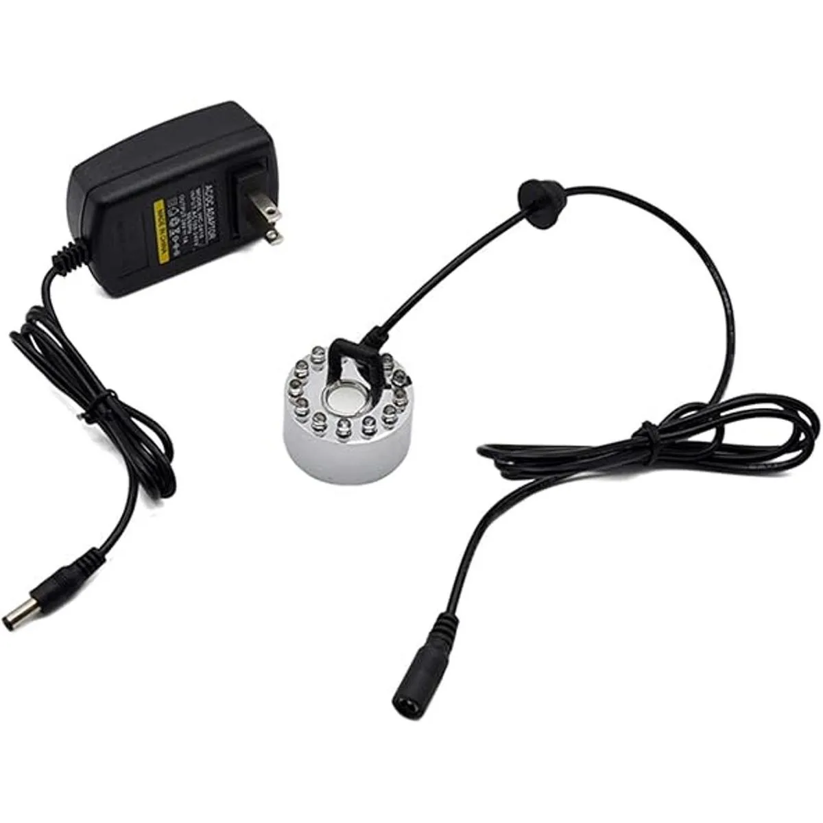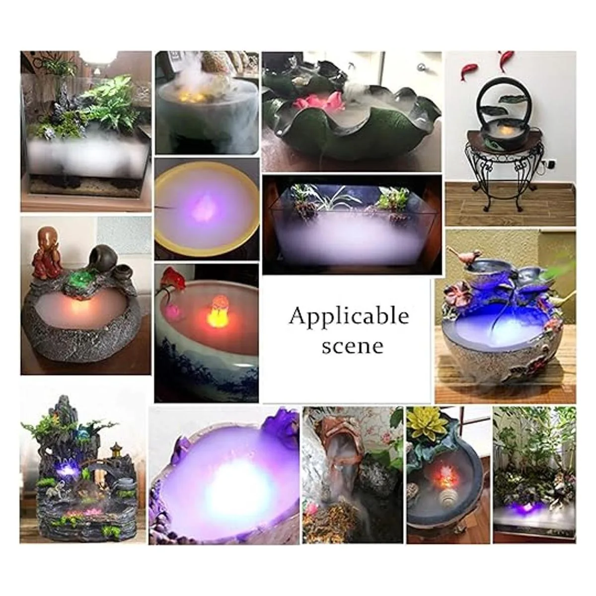 Akeydeco Máquina de niebla para fiestas de Halloween, fuente ultrasónica para estanque de agua,12 LED, luz intermitente roja, amarilla y azul, atomizador humidificador de aire de aluminio de decoración para fiestas de Halloween, tanques rocosos de peces y fuentes para aves