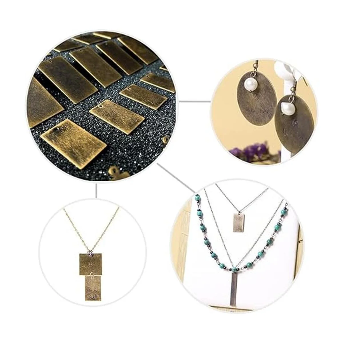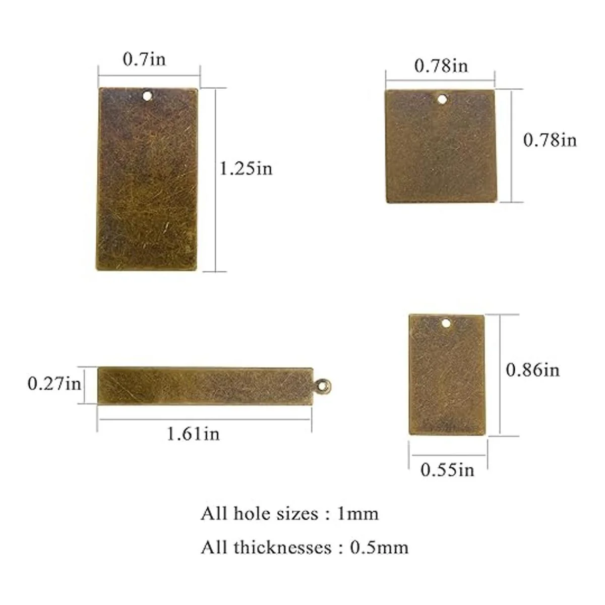 AKHAT Estampación de metal de latón en blanco rectangular para estampado de metal y suministros de fabricación de joyas 4 tamaños, 24 unidades, bronce antiguo