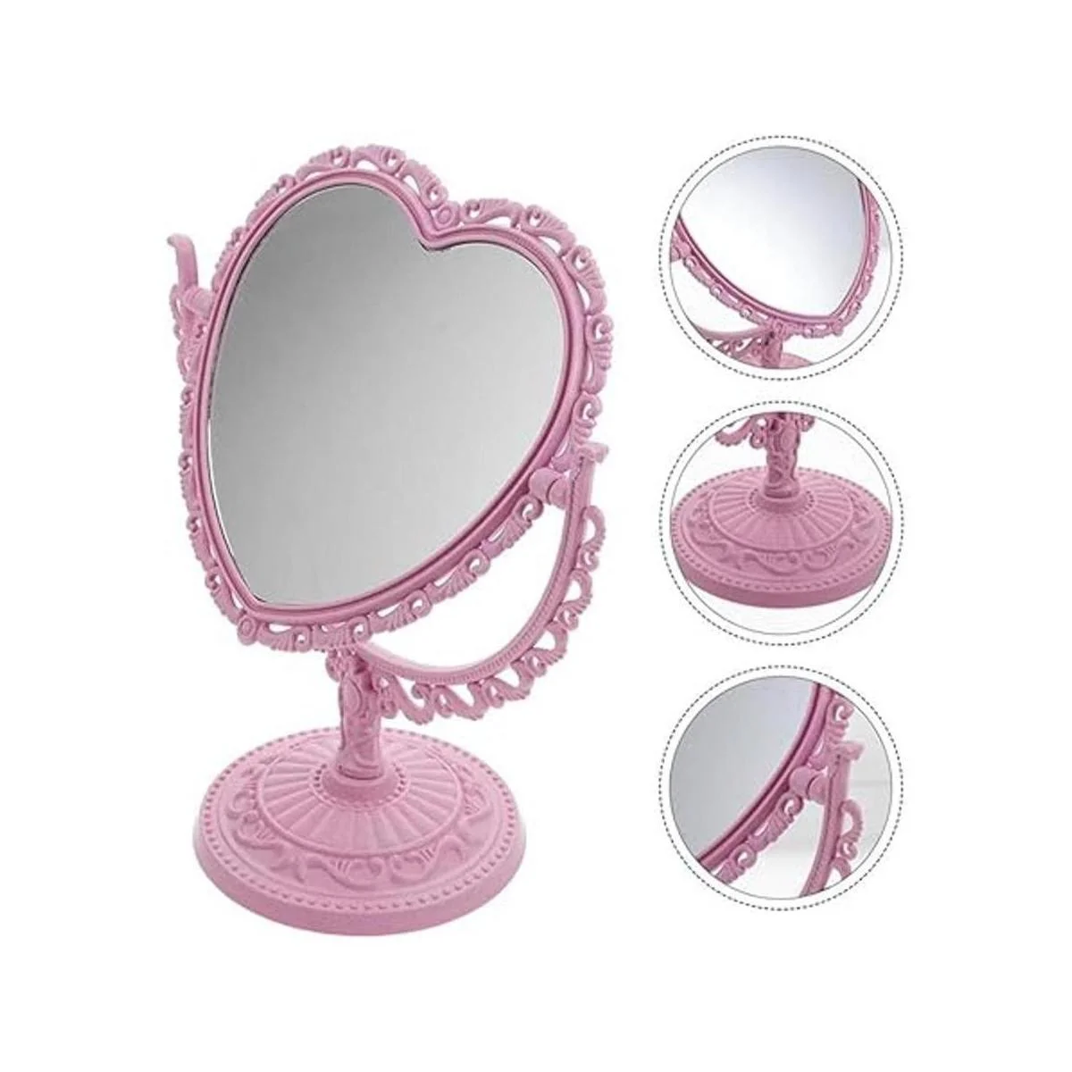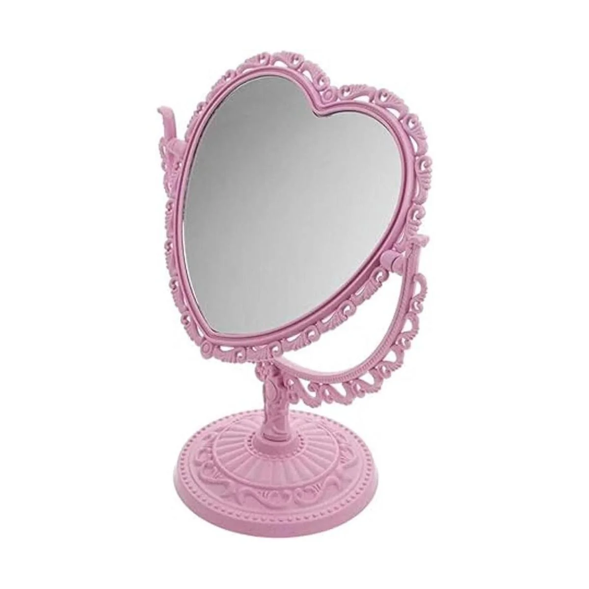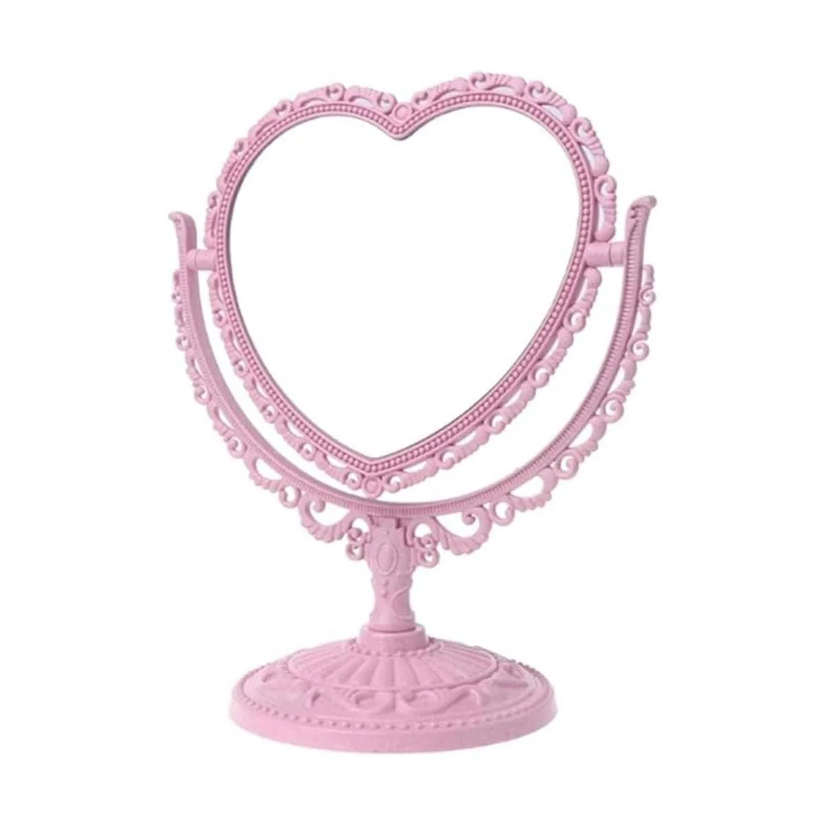 AKOAK 1 paquete de espejo cosmético simple y encantador en forma de corazón de plástico giratorio de doble cara, espejo ligero para baño, dormitorio cuatro colores rosa