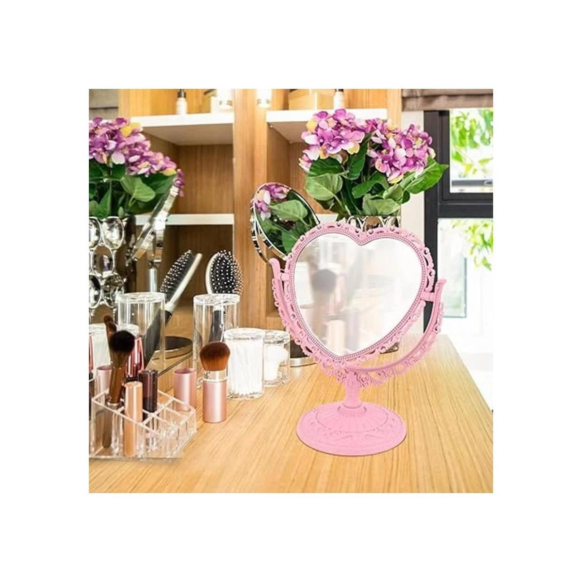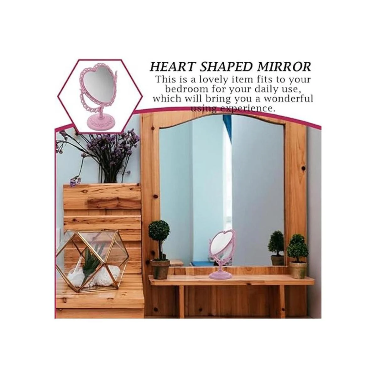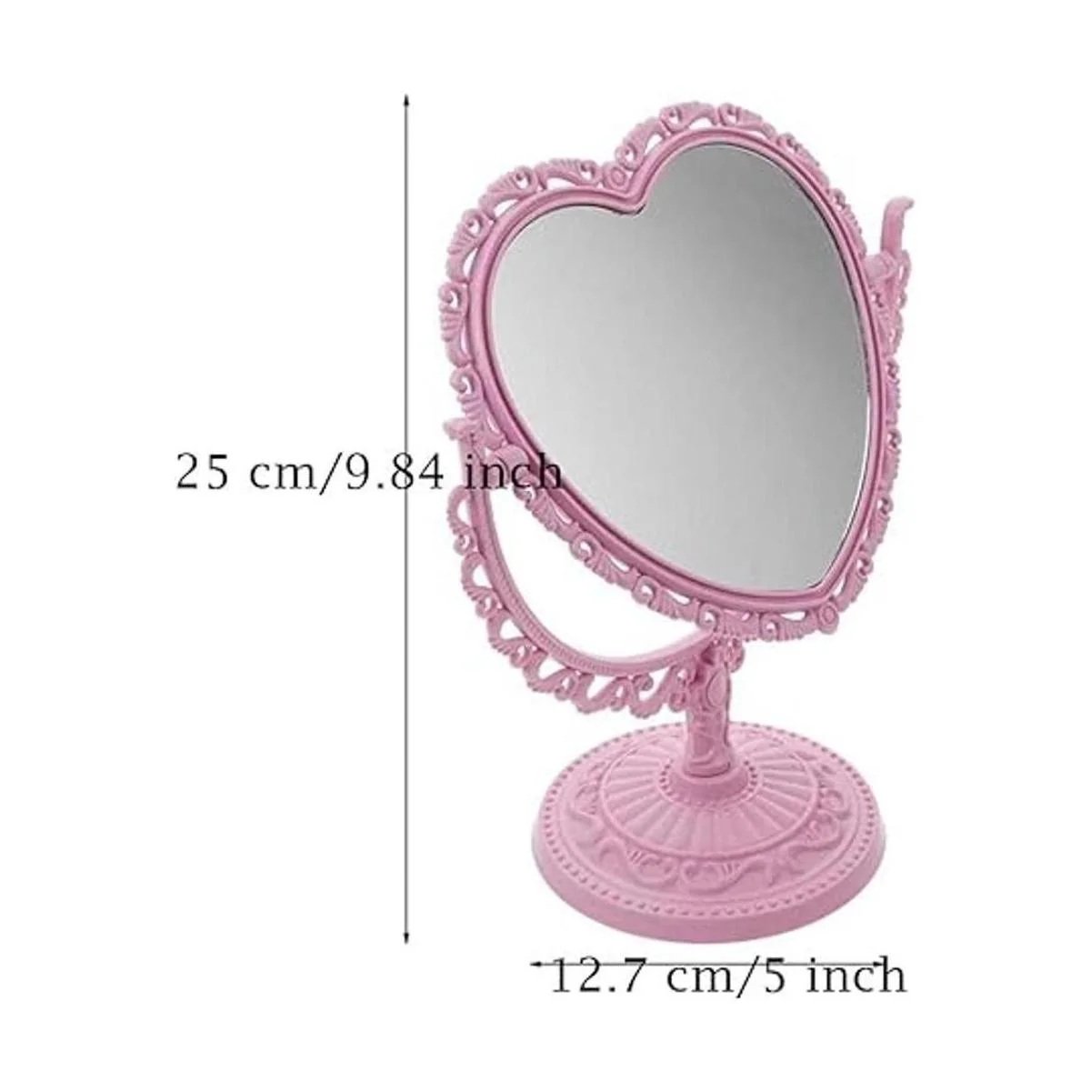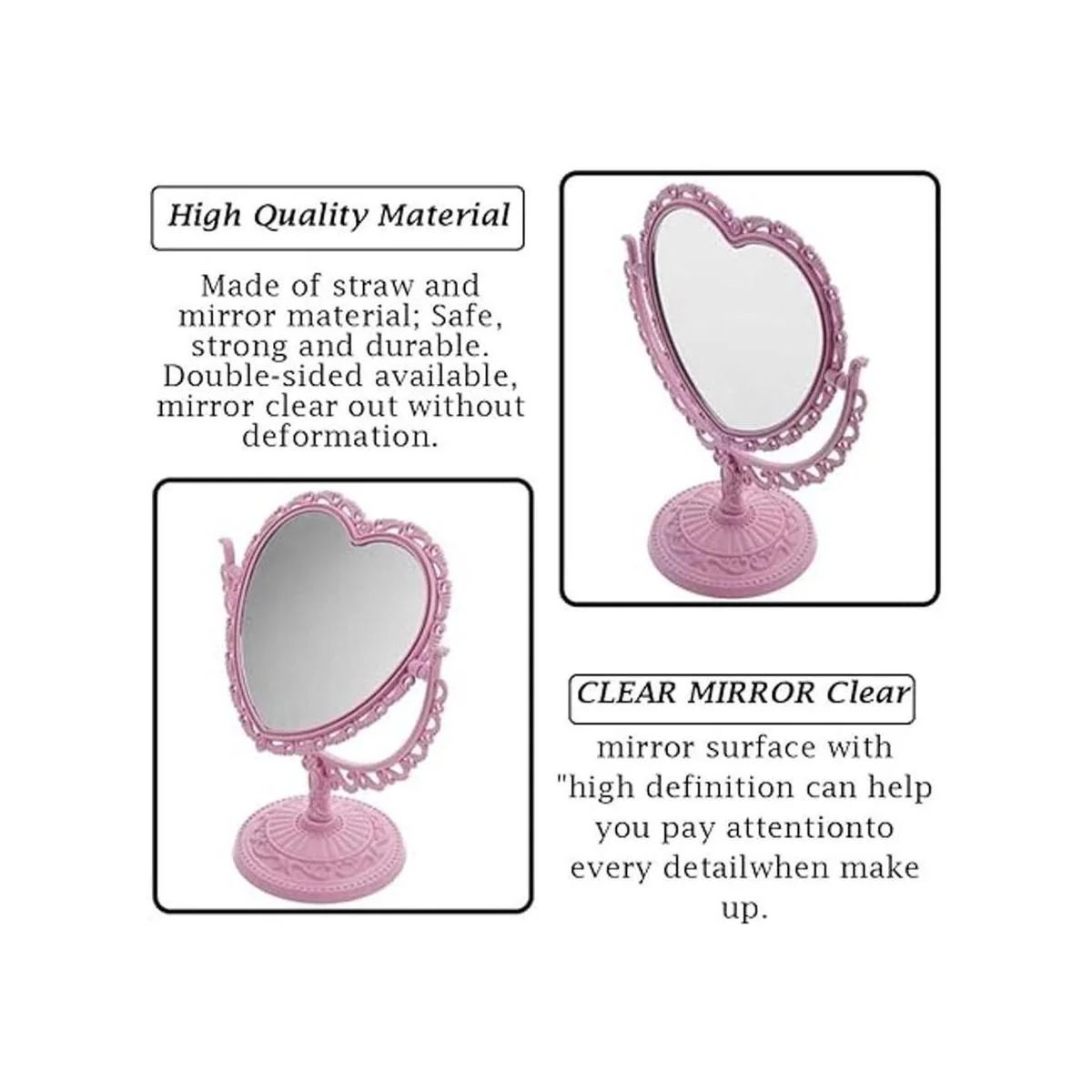 AKOAK 1 paquete de espejo cosmético simple y encantador en forma de corazón de plástico giratorio de doble cara, espejo ligero para baño, dormitorio cuatro colores rosa