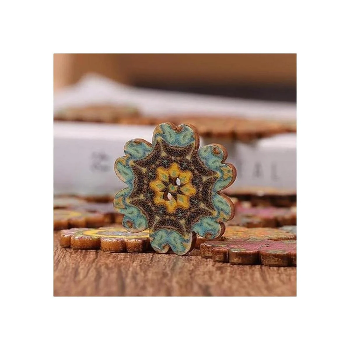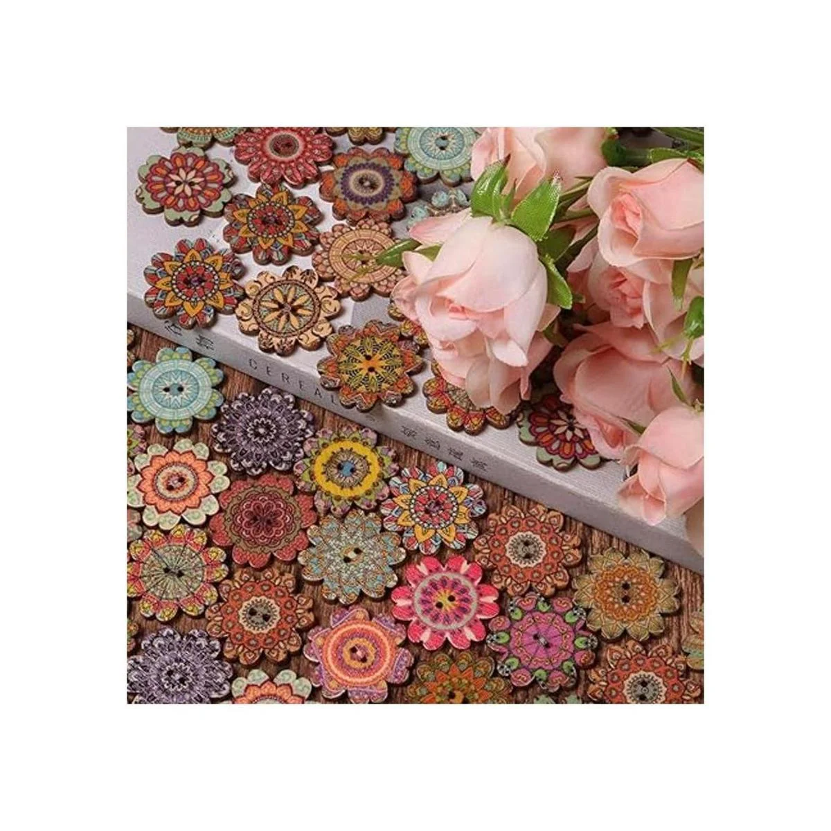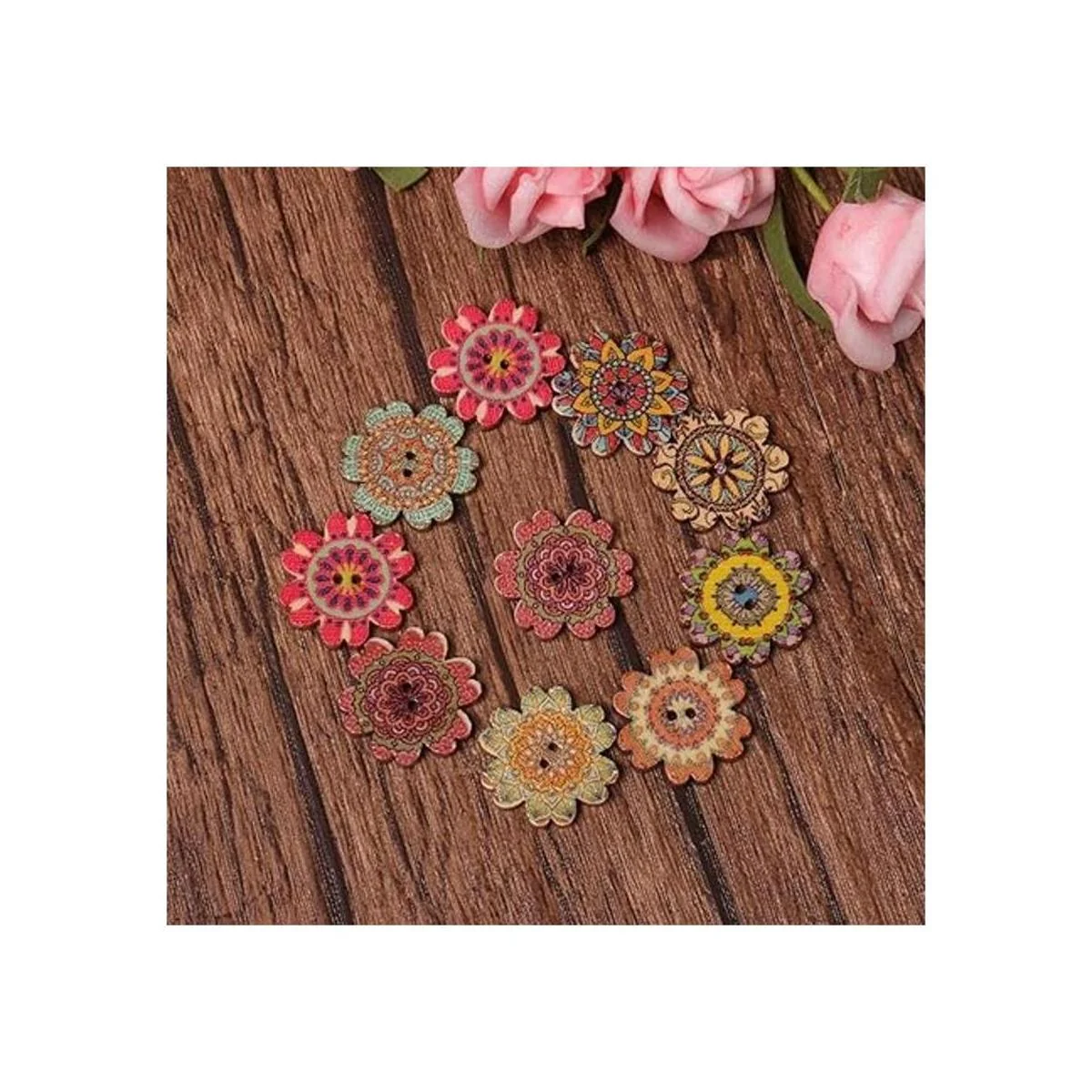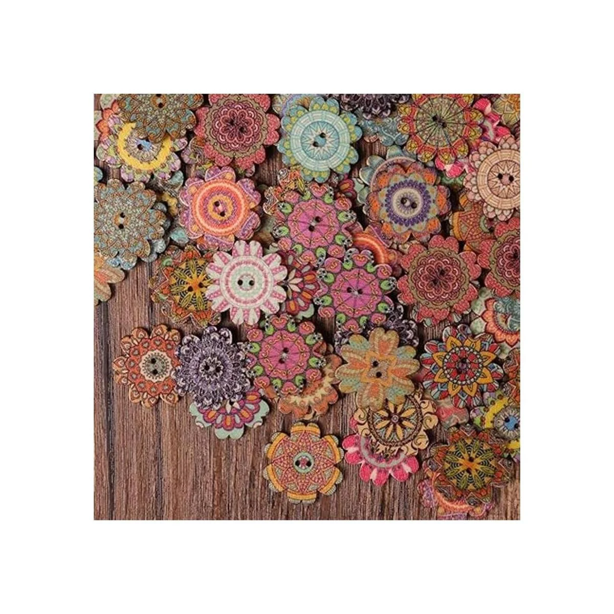 AKOAK 100 botones de madera simples estilo retro, botones de girasol, diseño clásico, dibujos animados para niños 0.591 in