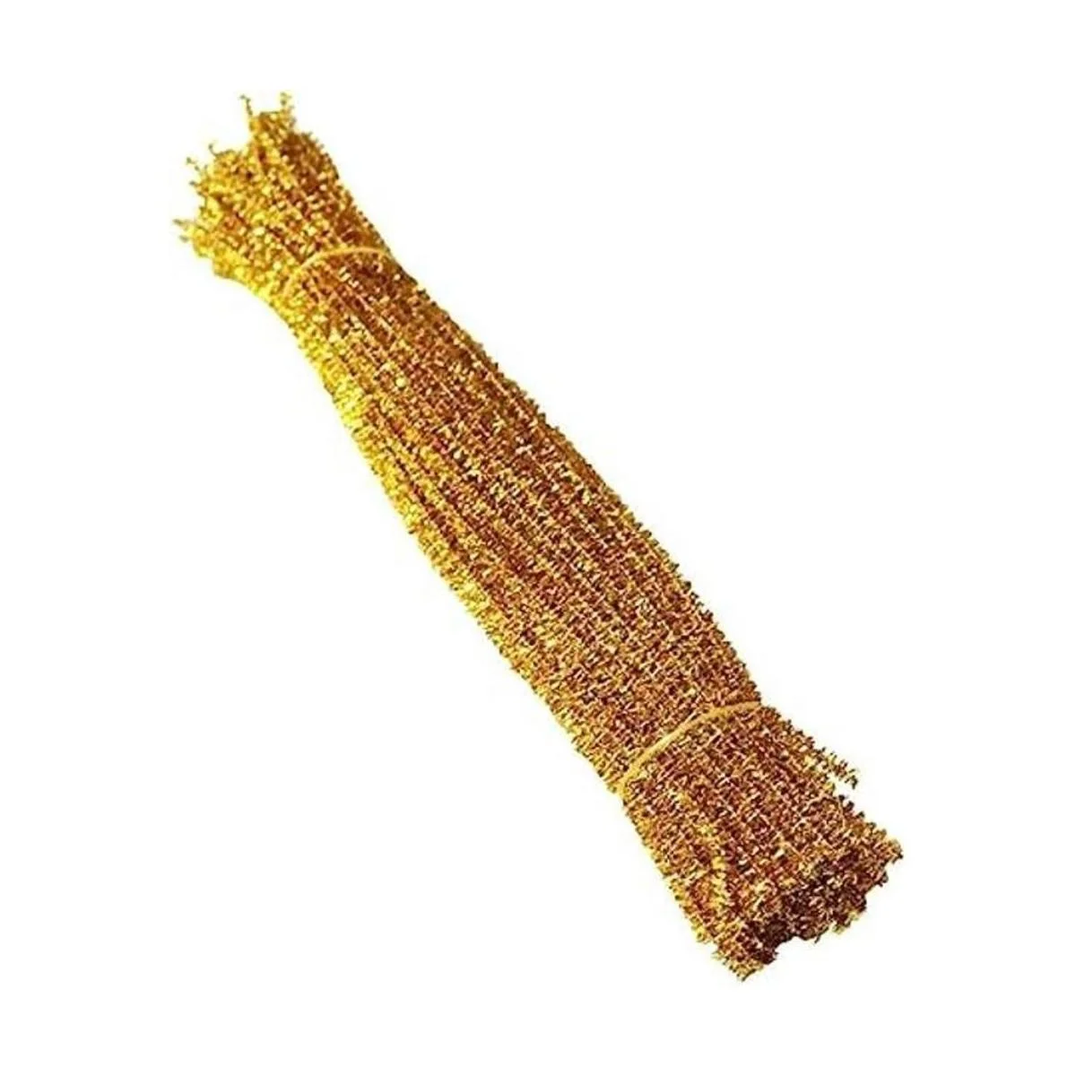Obtendrá 100 limpiadores de tubos con purpurina en color dorado.