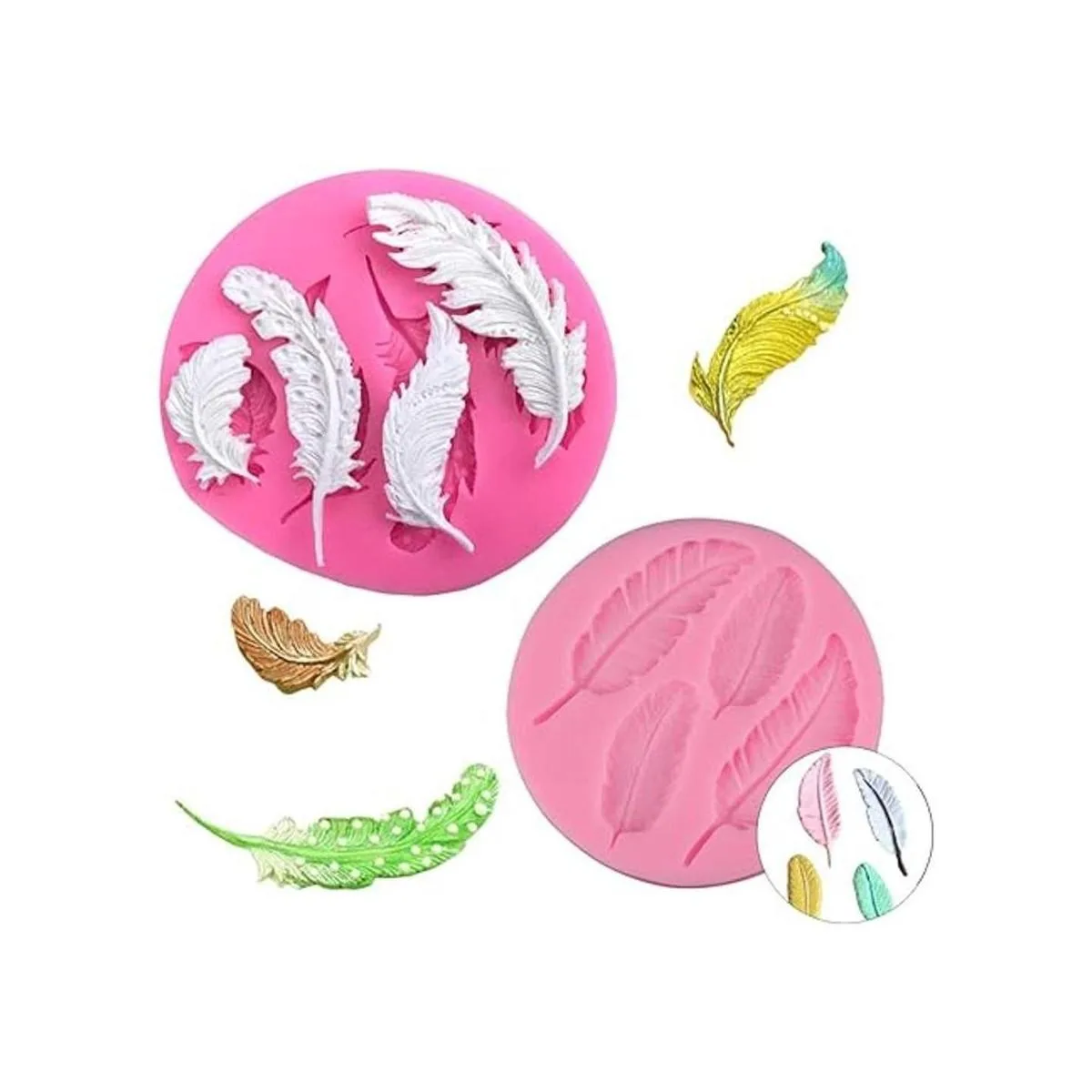 AKOAK 2 moldes de fondant de silicona de plumas, bricolaje hecho a mano herramientas de hornear para fondant Chocolate Candy Cake decoración arcilla polimérica y manualidades