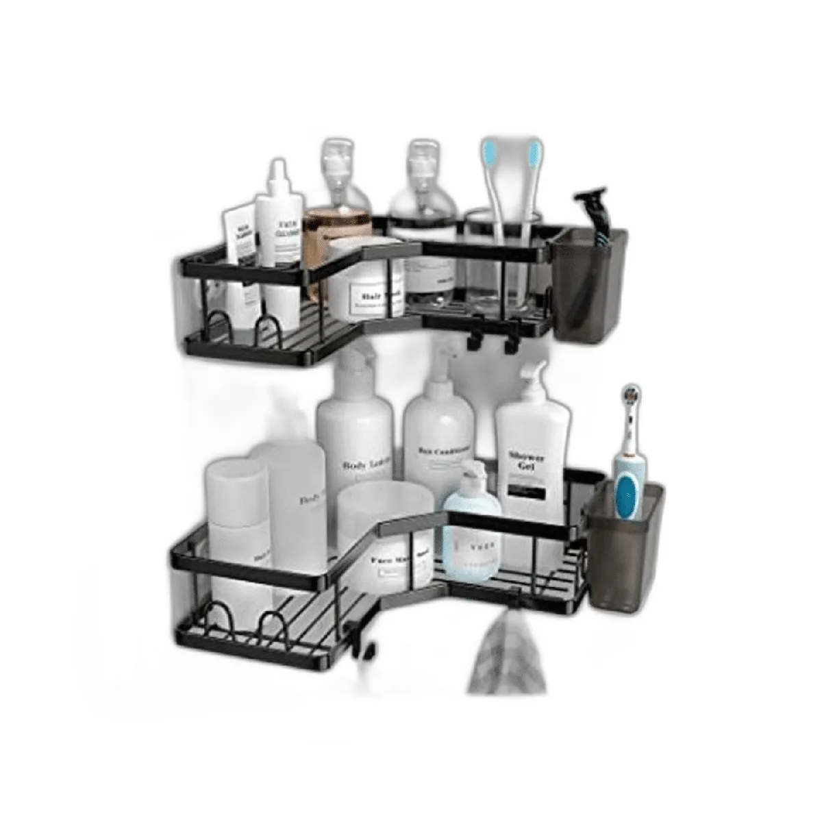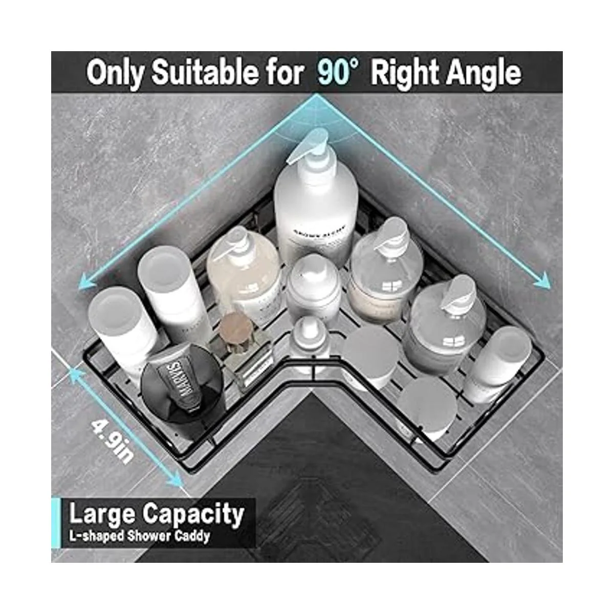Ahorro de espacio y diseño elegante: el organizador de ducha de esquina en forma de L está diseñado para hacer un gran uso del espacio de las esquinas. Gran organizador de ducha puede organizar la mayoría de los artículos de tocador en el baño y ayudar a crear un aspecto limpio y acabado en tu ducha. Extremadamente práctico para organizar la ducha.