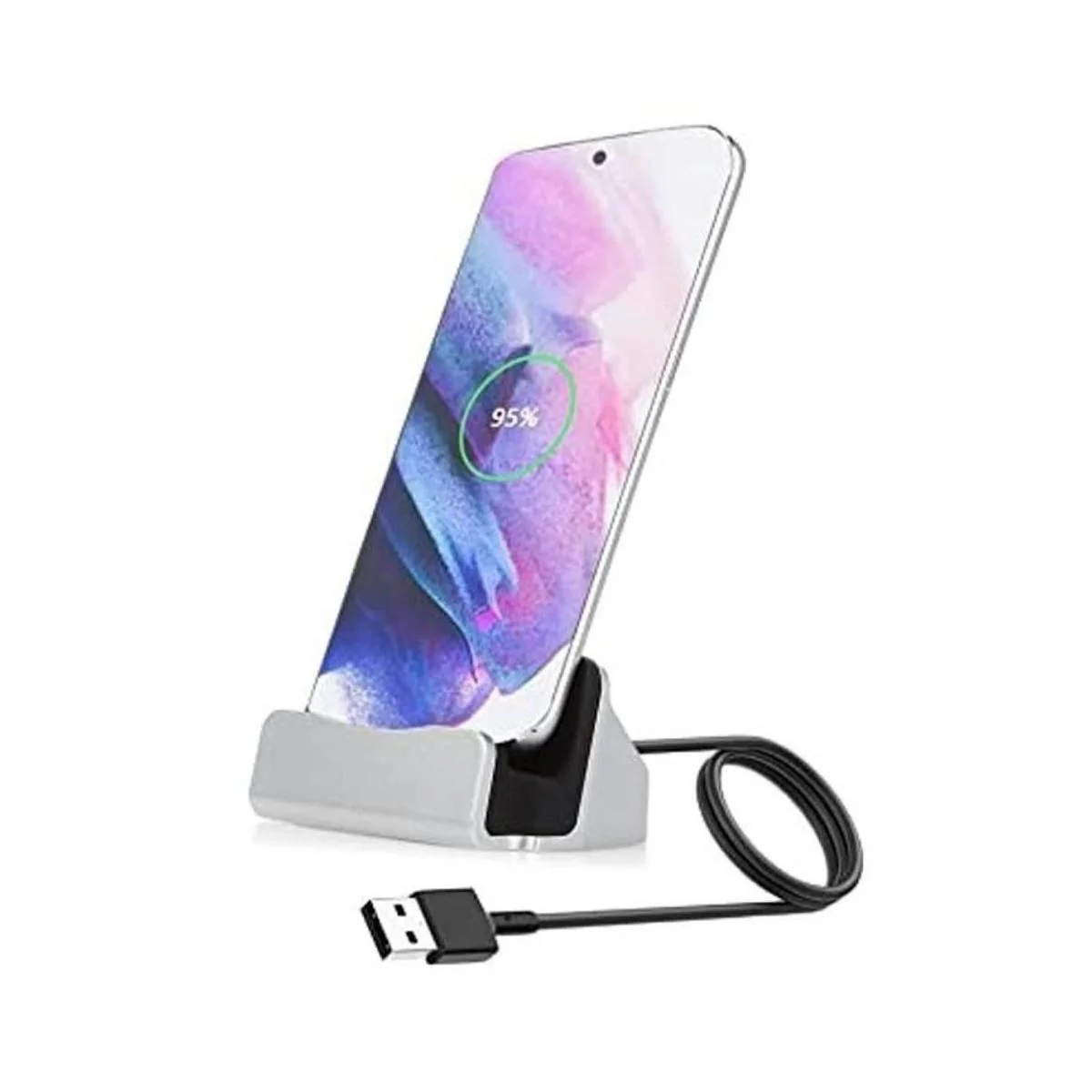 AKwor Estación de carga rápida USB C, escritorio de carga para Samsung Galaxy S8, Note8, LG G5 G6 V20, HTC 10, Microsoft Lumia 950 XL, Google Pixel, OnePlus 5Plata