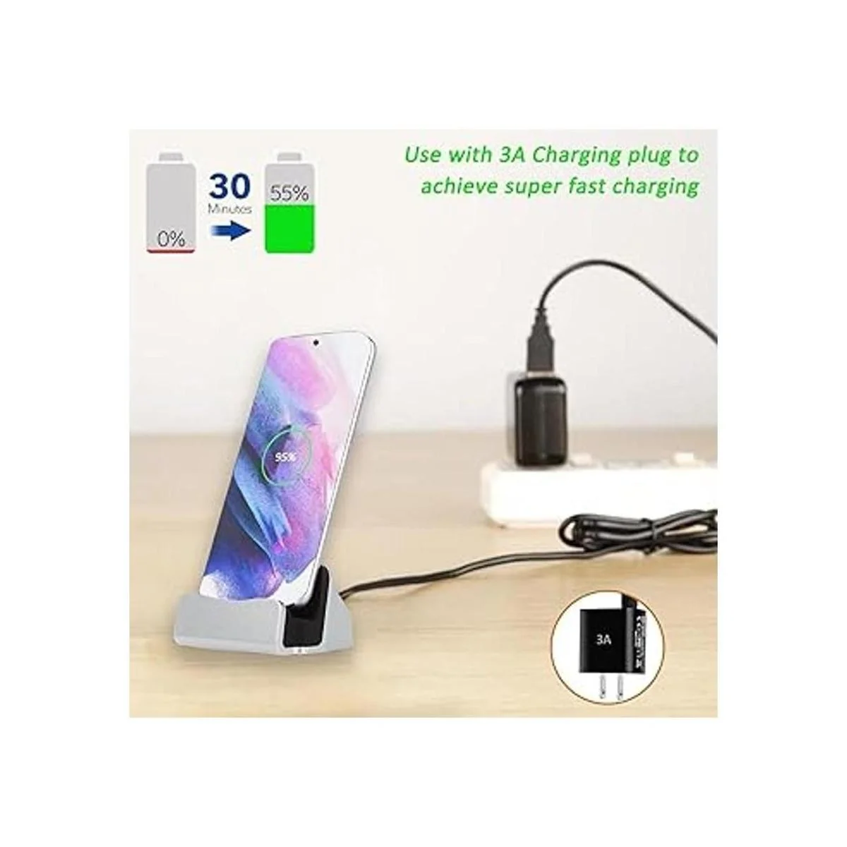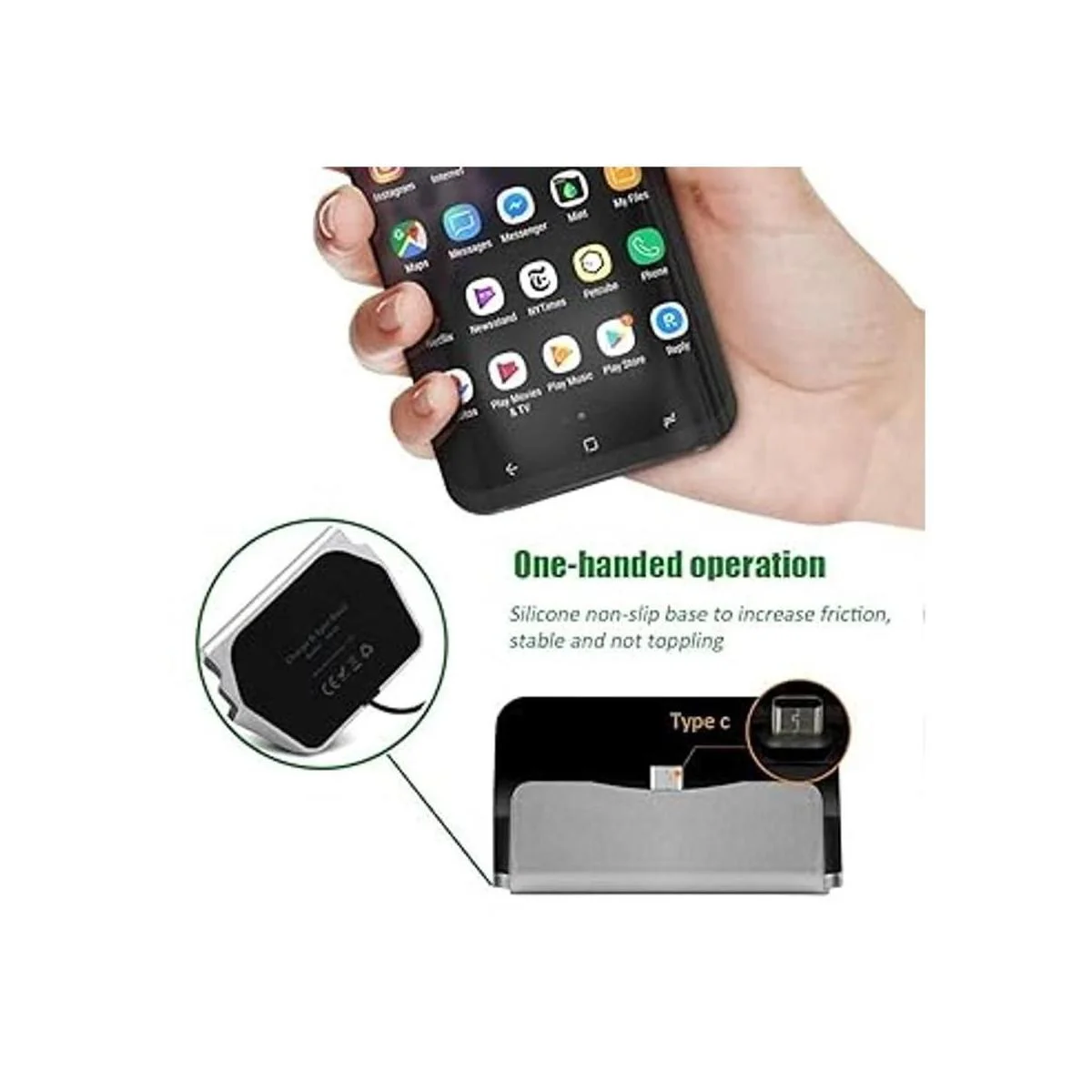 Nota: 1 base de carga tipo C con cable integrado de 3.3 ft, otros accesorios no están incluidos, Google Pixel 2XL no funciona con esta base. Este producto no incluye un cargador, esto es solo un soporte y la velocidad de carga depende de tu cargador.