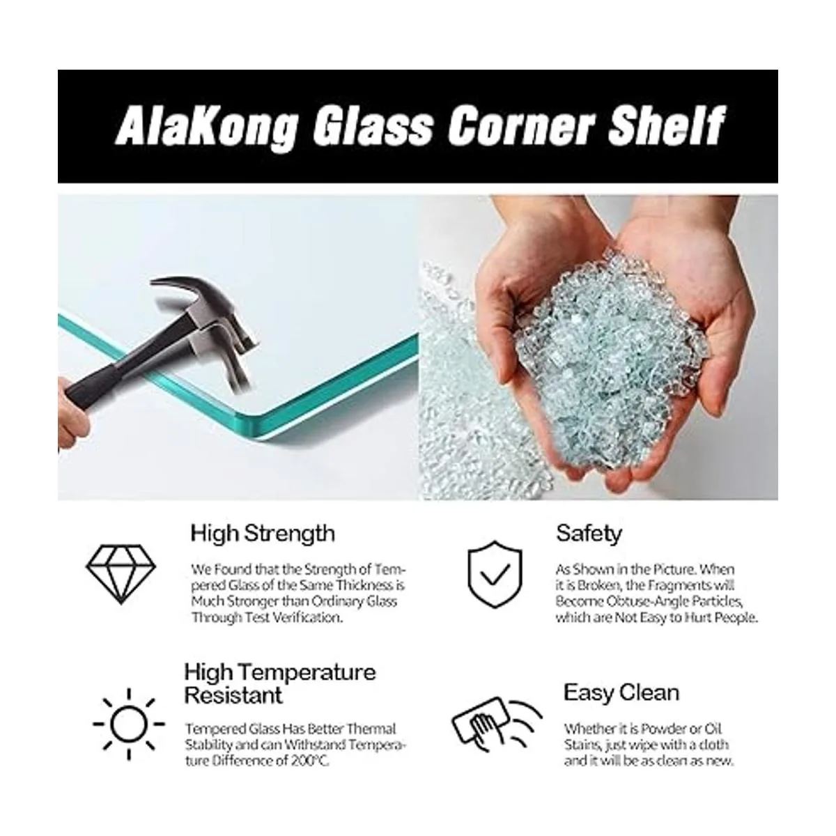 Gran ahorro de espacio: los estantes de cristal de esquina de AlaKong con diseño de esquina que ahorra espacio mantienen tu baño organizado. Dimensiones del estante de baño de cristal: 9.5 x 9.5 pulgadas, lo que garantiza un mayor espacio de sujeción, y puede soportar hasta 20 libras. El estante de esquina de cristal puede ayudarte a organizarte eficazmente en cada habitación. Crea espacio adicional en el baño para guardar champú, jabón, acondicionador, limpiador facial u otros. Los estantes de esquina de pared te ayudan a mantener todos los artículos perfectamente a mano.