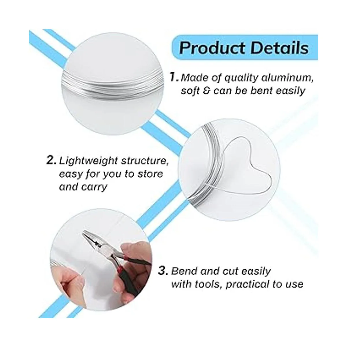 Alambre maleable para manualidades: hecho de aluminio de alta calidad, el alambre de joyería Cruzix es lo suficientemente suave como para doblarse y dar forma fácilmente, pero también lo suficientemente resistente como para mantener su forma muy bien. Además, el alambre plateado tiene un acabado brillante y hermoso que no se desvanece ni se oxida con el tiempo.