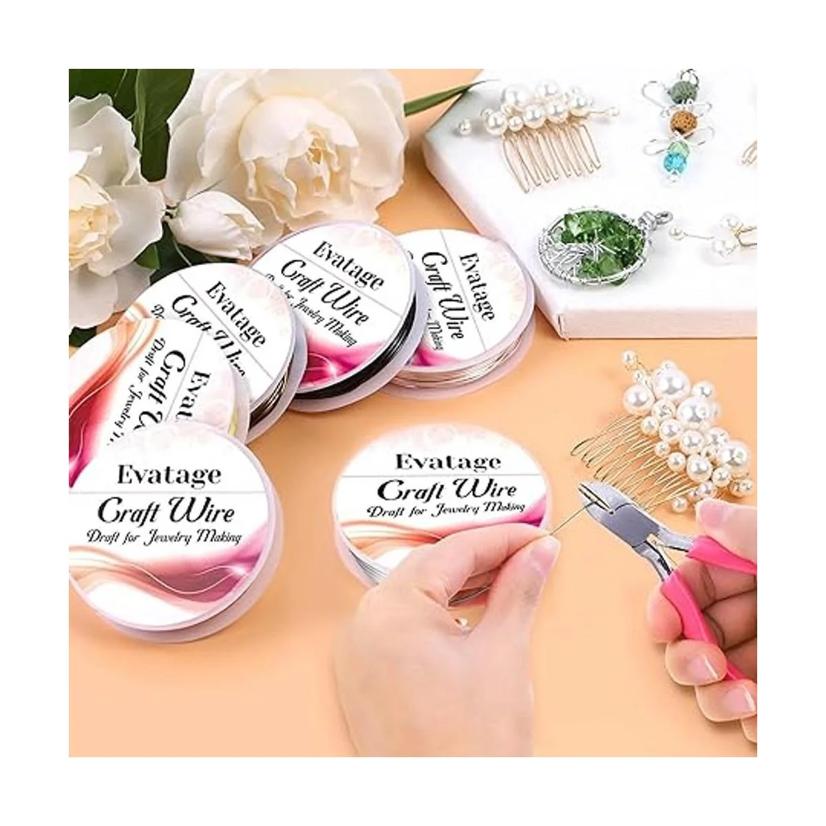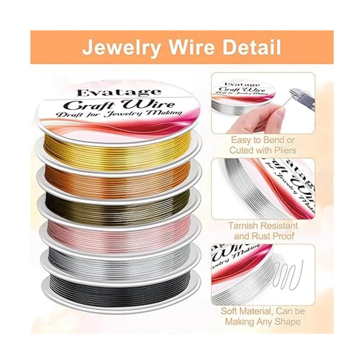 El paquete incluye: nuestro juego de alambre de joyería contiene 6 rollos de alambre de manualidades en diferentes colores. El kit de alambre de joyería de gran valor puede satisfacer tus diversas necesidades de fabricación de joyas o creaciones de manualidades.