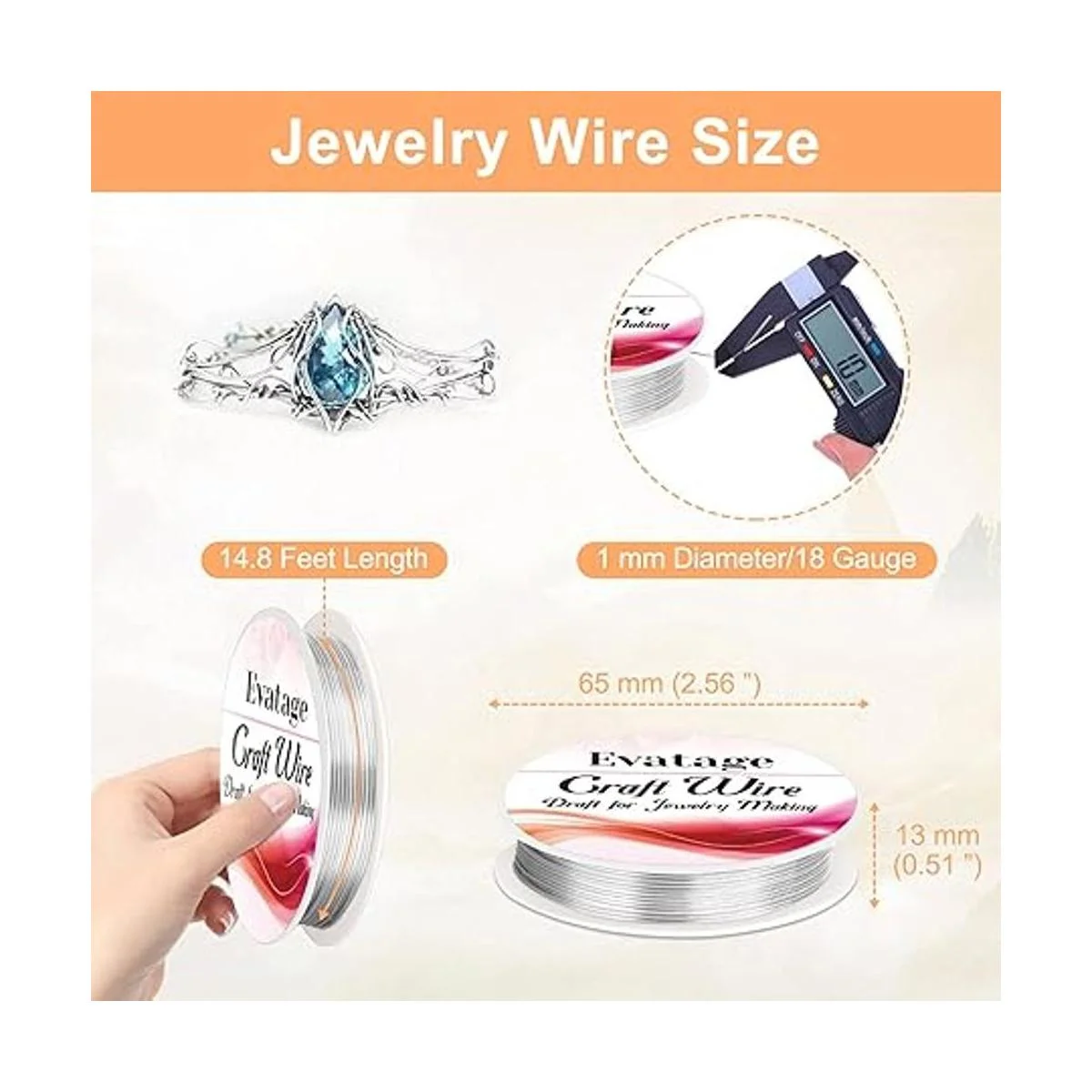 Alambre de joyería de calibre 18: el tamaño de este alambre de manualidades es de 0.039 in calibre 18 de diámetro y 14.8 ft por rollo. Este tamaño de alambre de cuentas es realmente fácil y cómodo de doblar para hacer cuentas y joyas.