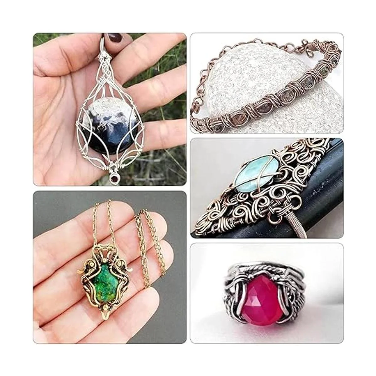 Amplia aplicación: estos cables de joyería de calibre 18 son perfectos para hacer proyectos de arte y joyería, como pulseras, collares, aretes, anillos, colgantes envueltos en alambre, cadenas de cuentas, anillos de salto, etc. Utiliza alambre de joyería para hacer el regalo de joyería perfecto para ti, tu familia y amigos.