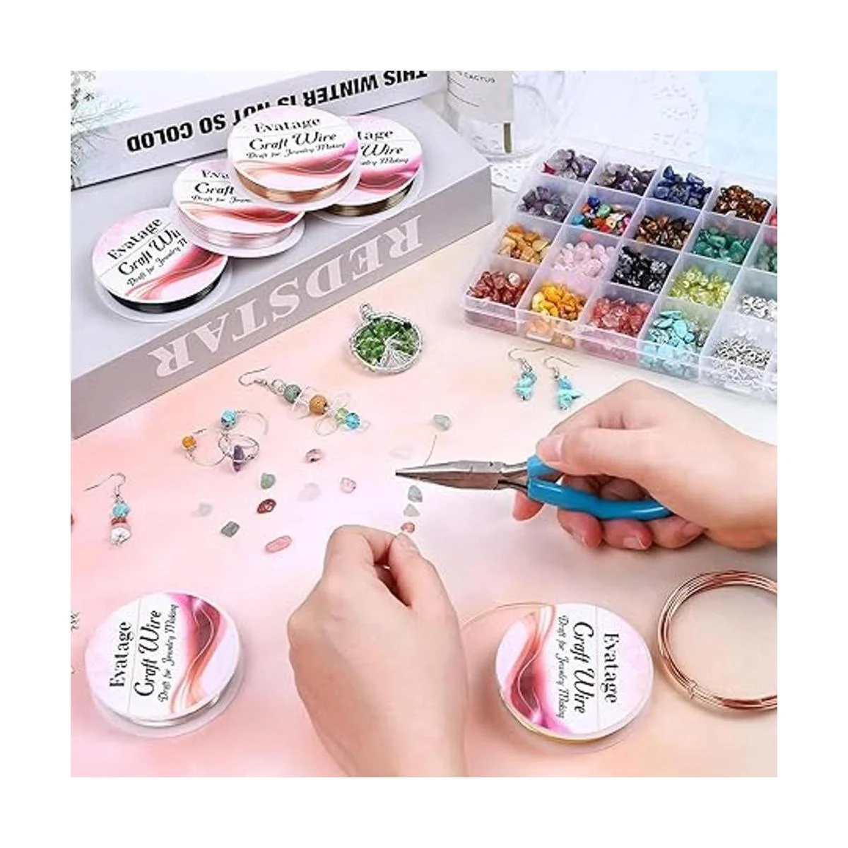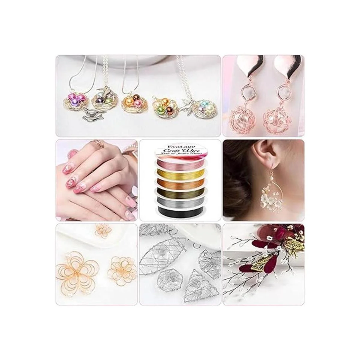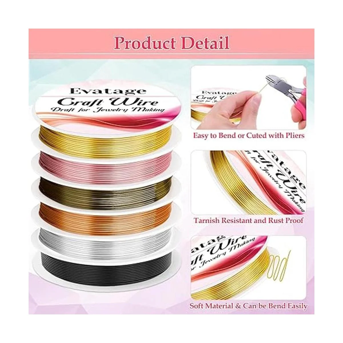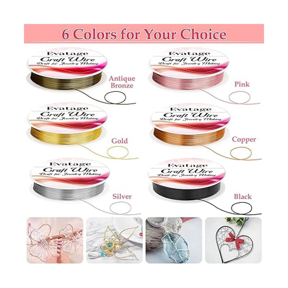 Lo que obtienes: nuestro juego de alambre de joyería contiene 6 rollos de alambre de manualidades en diferentes colores. El kit de alambre de joyería de gran valor puede satisfacer tus diversas necesidades de fabricación de joyas o creaciones de manualidades.