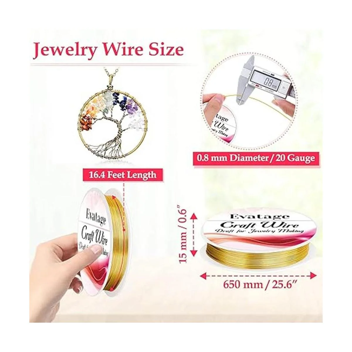 Tamaño del alambre de joyas: el tamaño de este alambre de manualidades es de 0.031 in calibre 20 de diámetro y 16.4 ft por rollo. Este tamaño de alambre de cuentas es realmente fácil y cómodo de doblar para hacer cuentas y joyas.