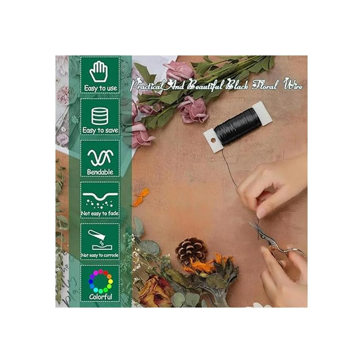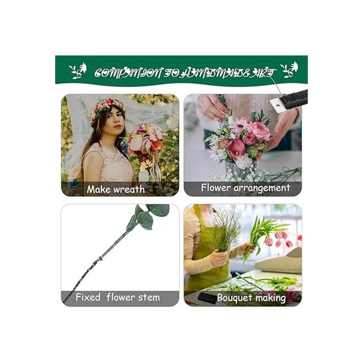 mbito de usos: estas líneas de paleta florales se pueden aplicar ampliamente en arreglos florales y proyectos de arte floral, incluyendo arreglos florales, coronas, guirnaldas, diademas de flores, ramos de boda, ramilletes y líneas de flores, haciendo que las flores se fijen más firmemente