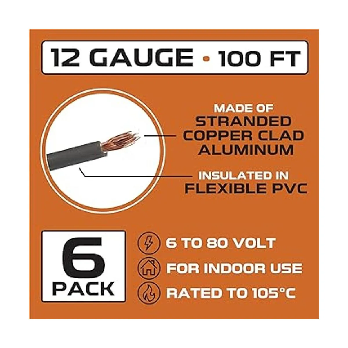 Alambre principal de calibre 12 Paquete surtido de 6 rollos 100 pies de alambre de aluminio recubierto de cobre por rollo