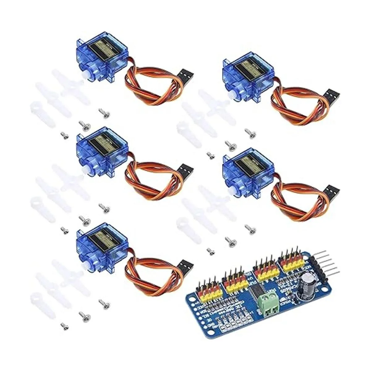 El paquete incluye: 5 microservos SG90 de 0.32 oz 1 controlador de servo PWM. Kit económico para satisfacer tus necesidades de bricolaje.