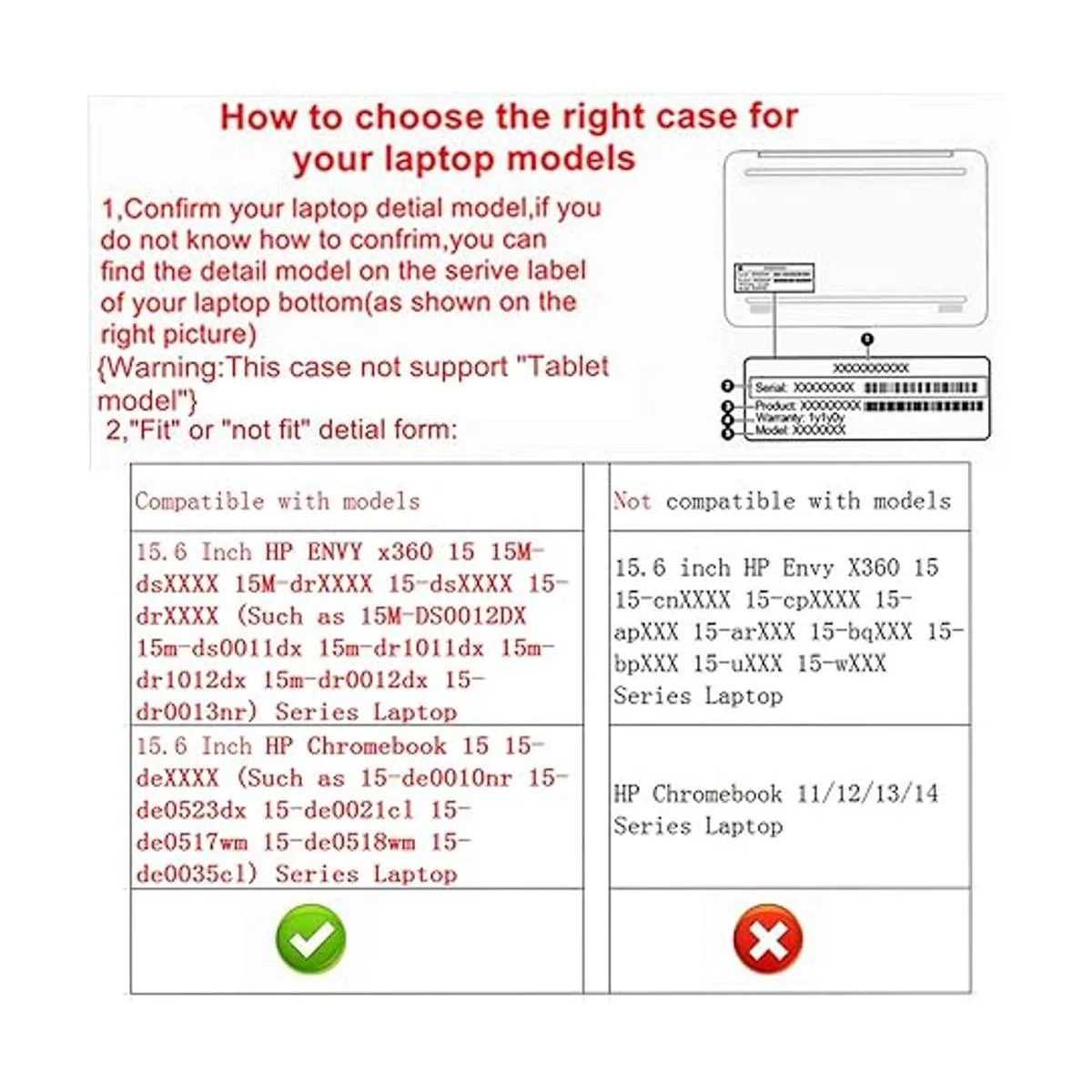 Esta funda no es una bolsa universal para portátil, cada funda es adecuada para algunos modelos especialmente portátiles. Está especialmente diseñada para MacBook Pro 16 2019 lanzamiento A2141 y 15.6 pulgadas HP ENVY x360 15 15MdsXXXX 15MdrXXXX 15dsXXXX 15dsXXXX 15drXXXX 15DD s1097nr 15zds100 15MDS0012DX 49.2 ftds0011dx 49.2 ftdr1011dx 49.2 ftdr1012dx 49.2 ftdr0012dx 15dr0013nr/ HP Chromebook 15 15deXXXX 15de00 010 nr 15de0523dx 15de0015nr 15de0021cl 15de0517wm 15de0518wm 15de0035cl Series Laptop.