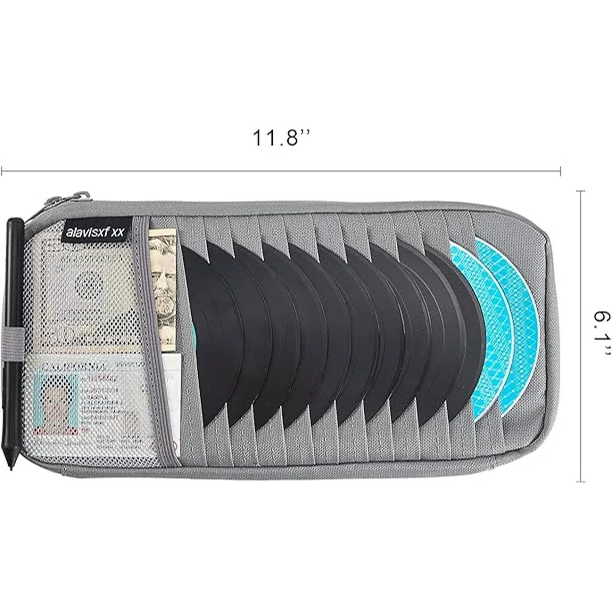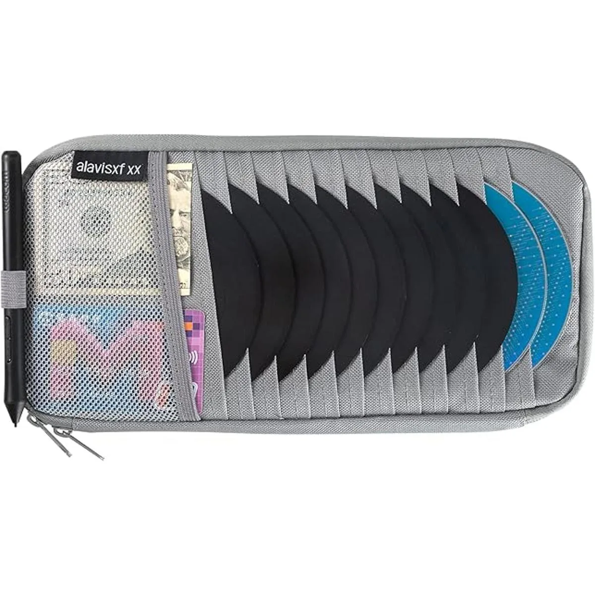 alavisxf xx Soporte para CD para coche, DVD, visera de vehículo, orangizer, gran capacidad con 12 mangas, 1 bolsillo de malla, 1 soporte para bolígrafos, 1 bolsillo interior trasero gris
