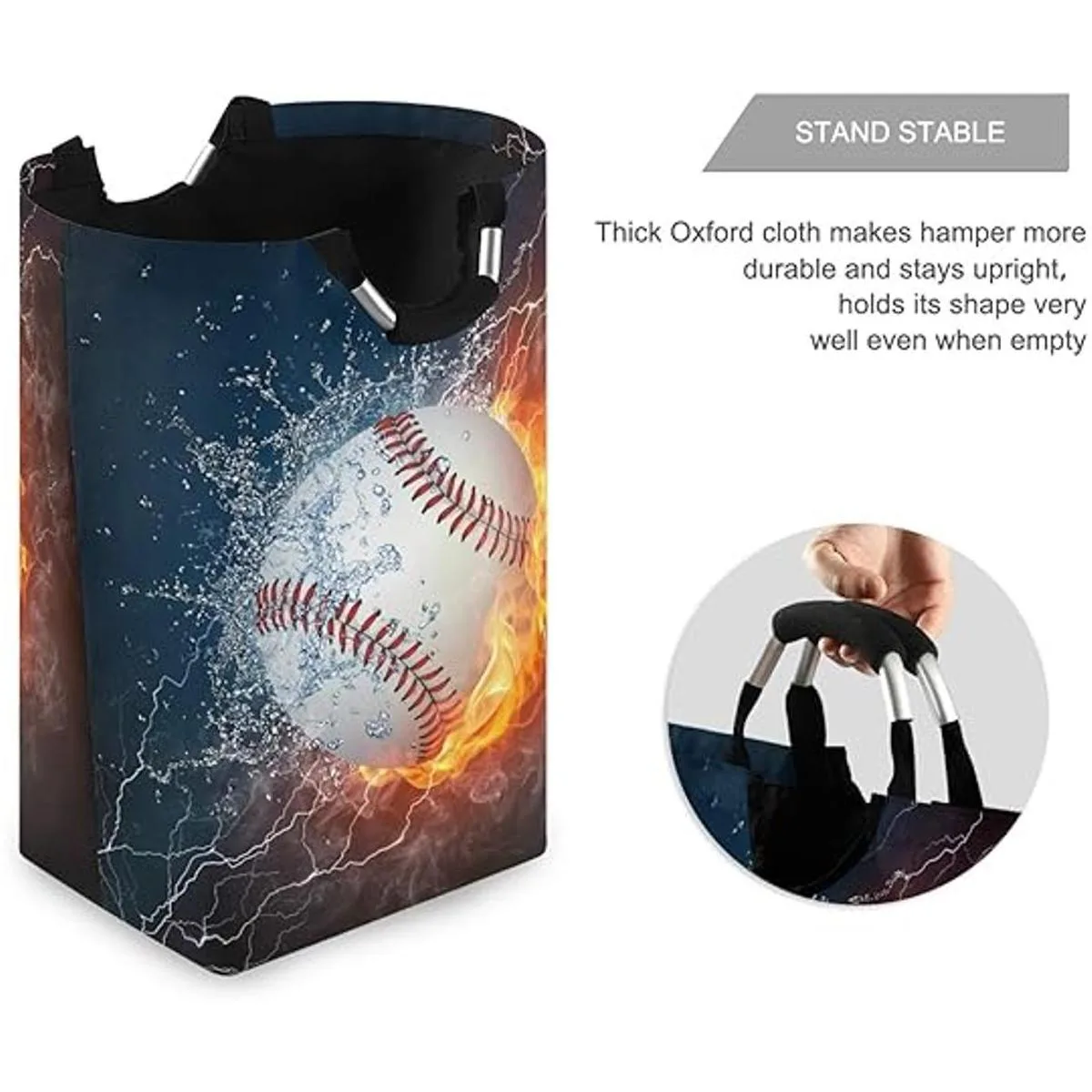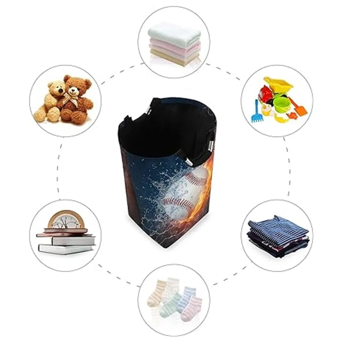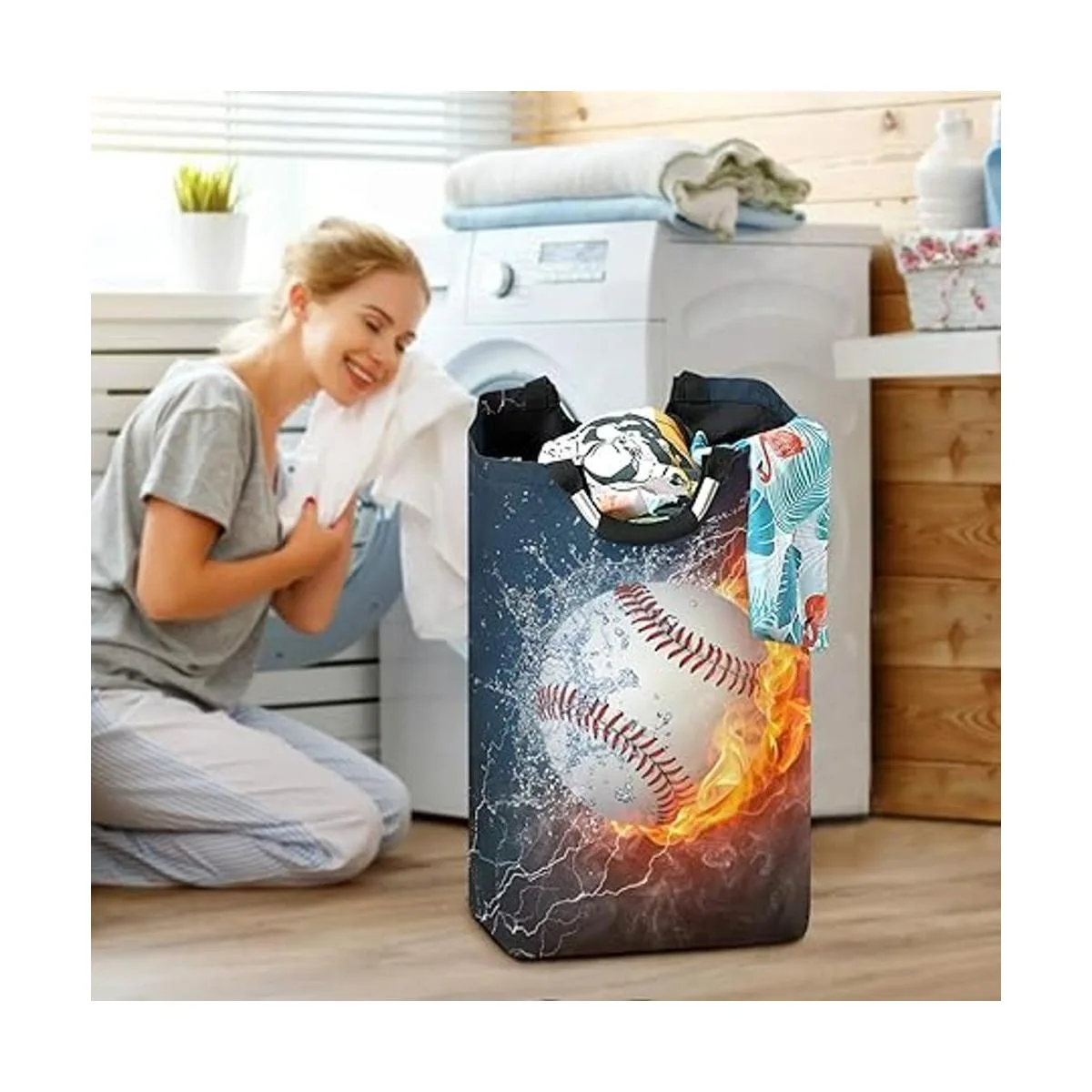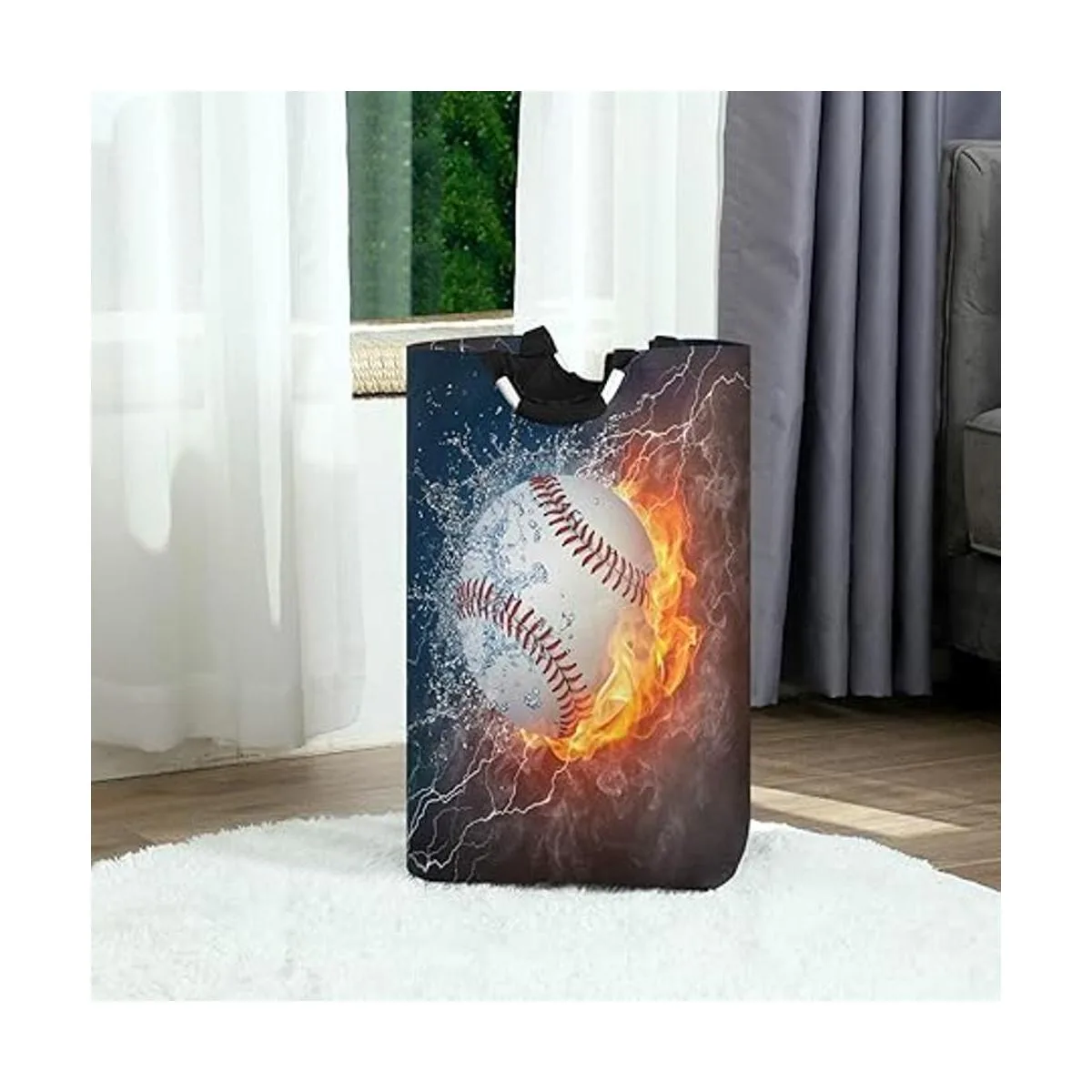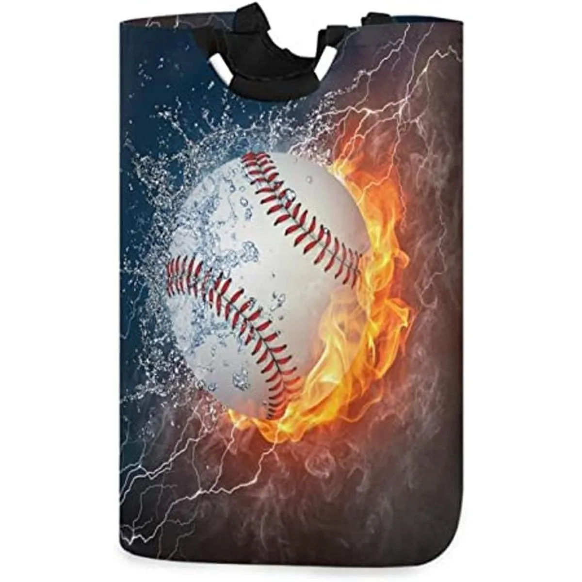 ALAZA Cesta para la colada grande para deportes de béisbol, agua, fuego, bolsa de lavandería, cesta plegable de tela Oxford elegante con asas, 22.7 pulgadas