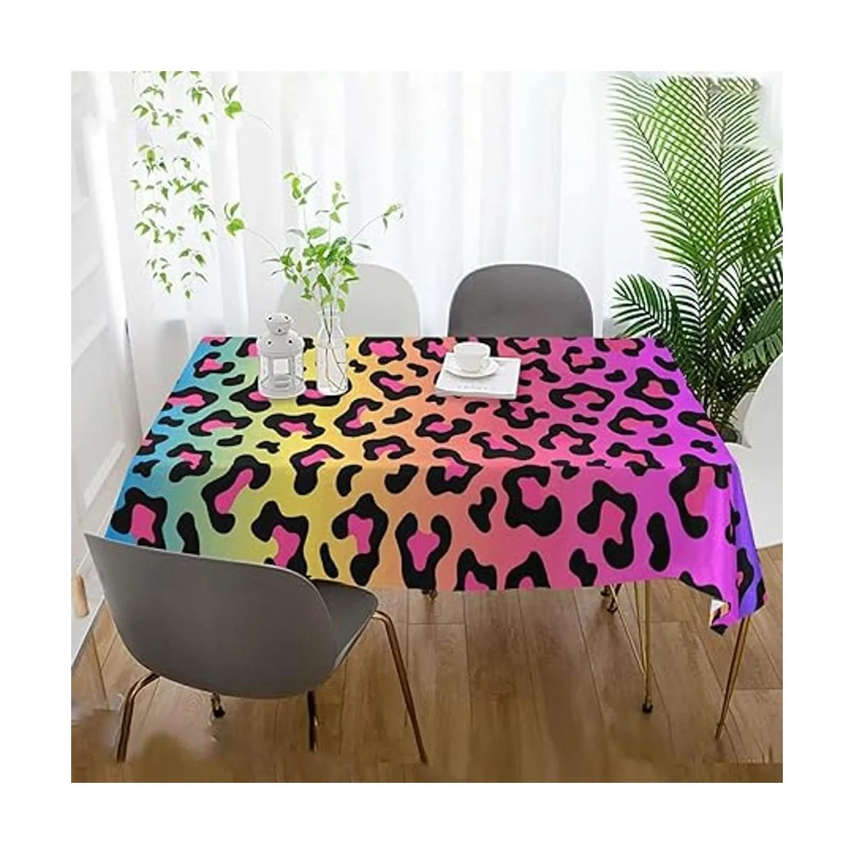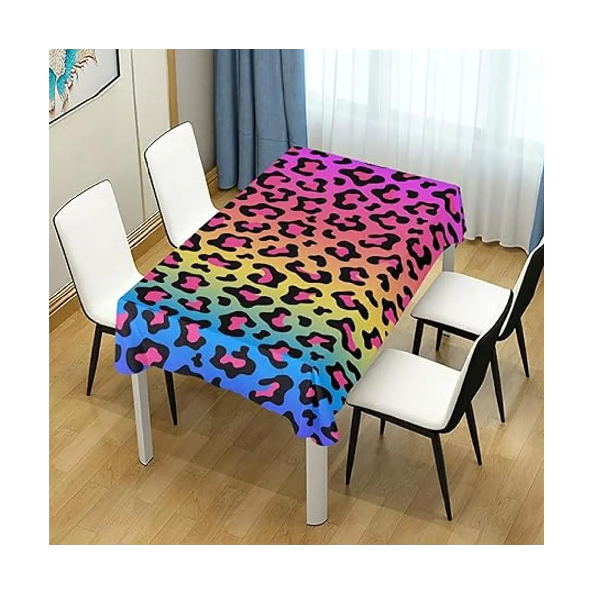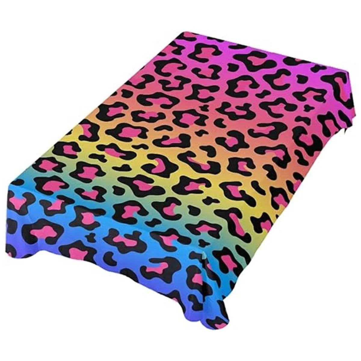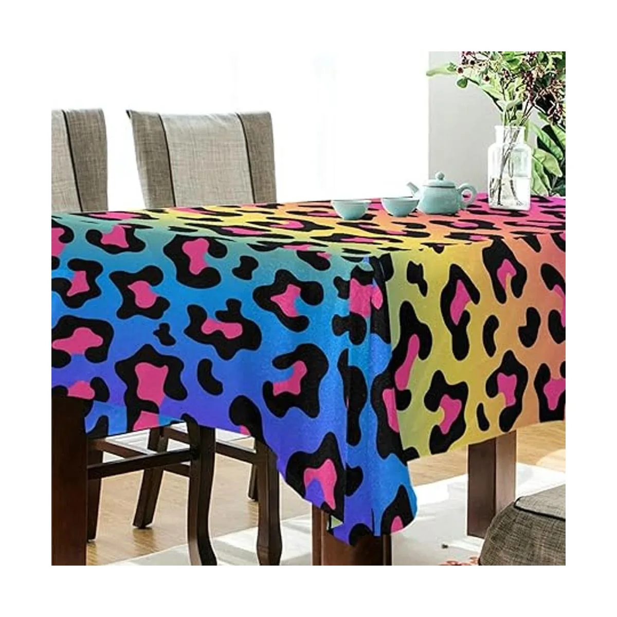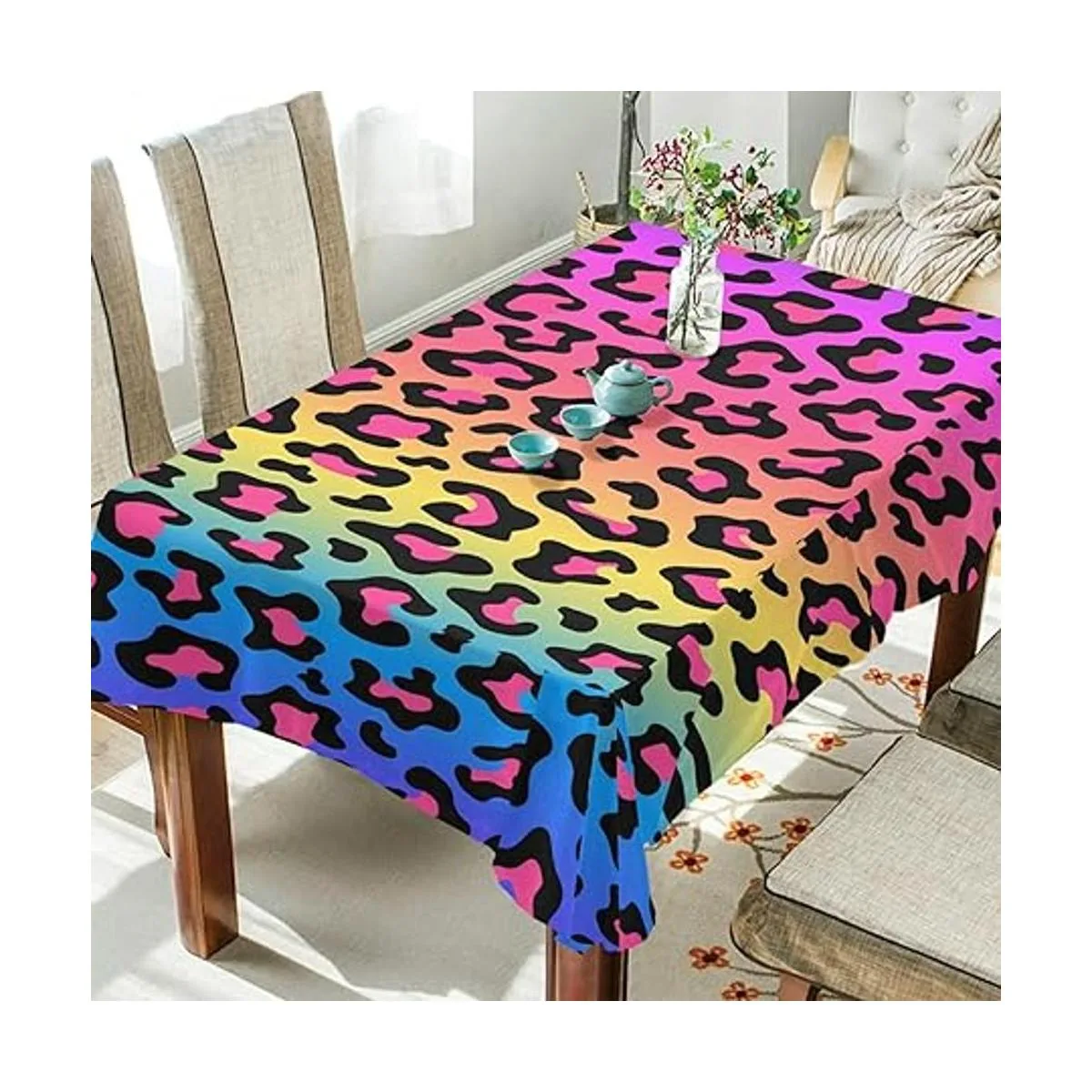 ALAZA Mantel rectangular para mesa de comedor, diseño de leopardo de color arcoíris neón para interiores y exteriores, para bodas, banquetes y fiestas, 54 x 72 pulgadas