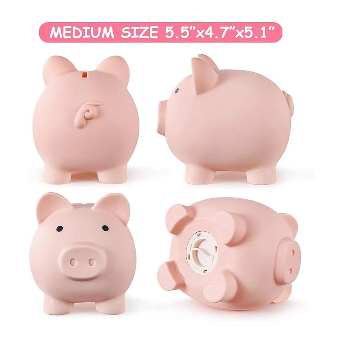 Alcancía de tamaño mediano: esta alcancía es de aproximadamente 5.5 x 4.9 x 4.7 pulgadas, lo suficientemente grande como para contener muchas monedas y dinero en efectivo, tamaño perfecto para que los niños pequeños lo sostengan o lleven.