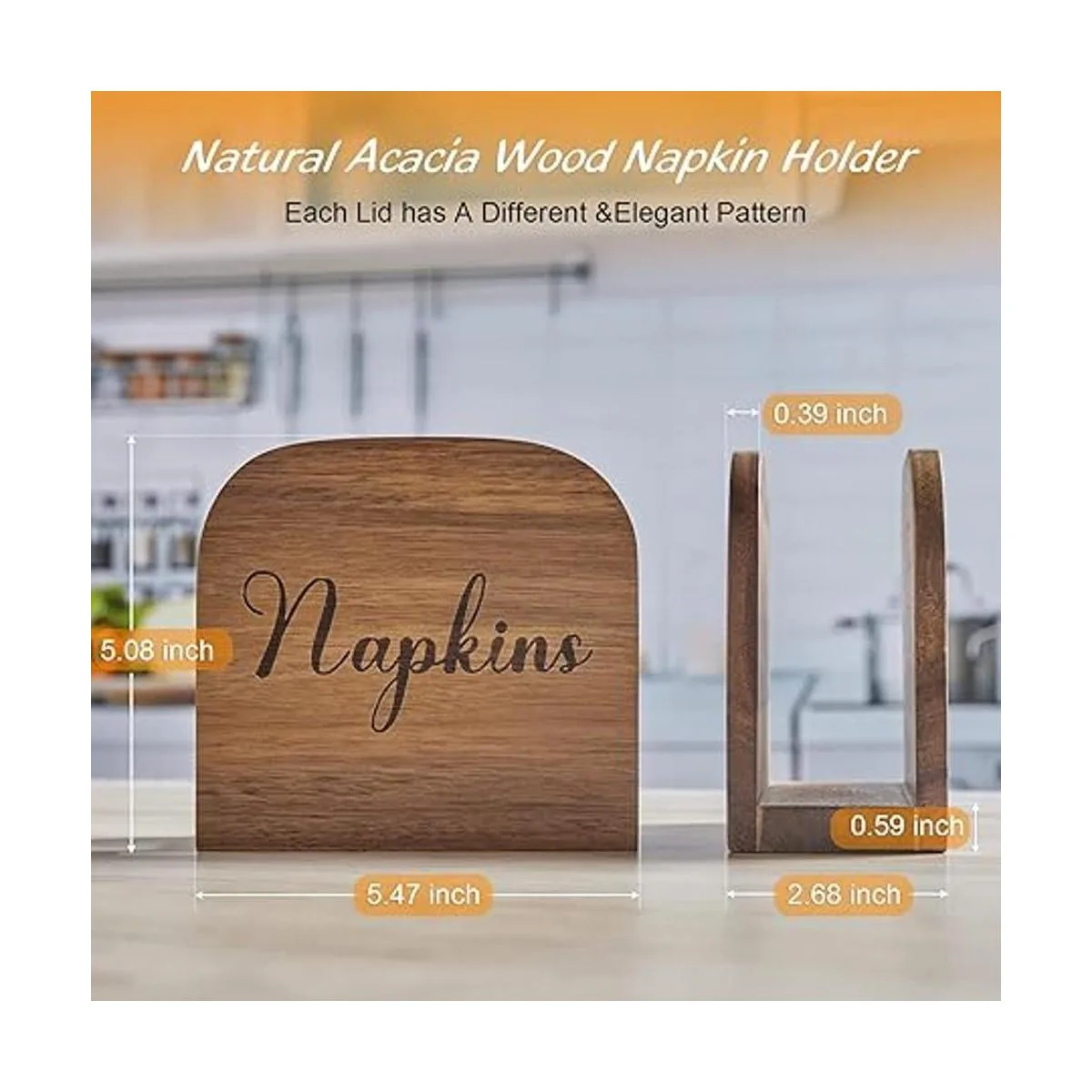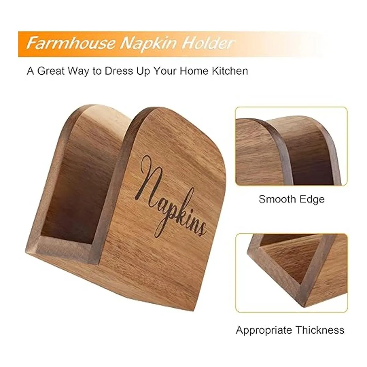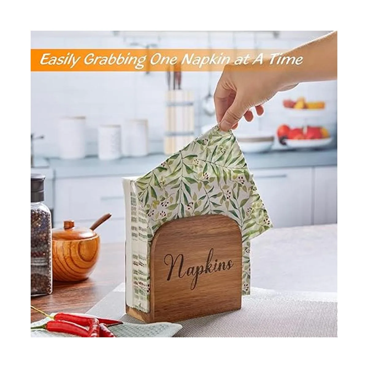 ALELION Servilletas de madera de acacia para cocina, servilletero rústico para decoración de mesa de cocina, comedor, dispensador de servilletas de madera vertical para uso en interiores y exteriores